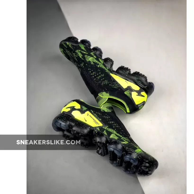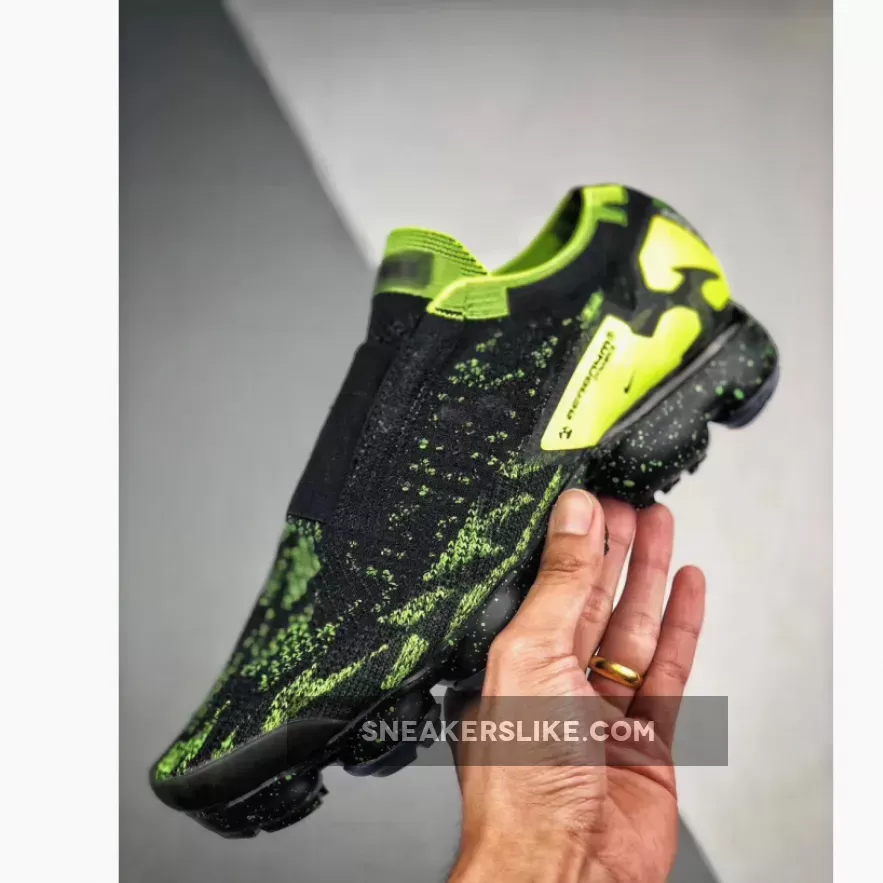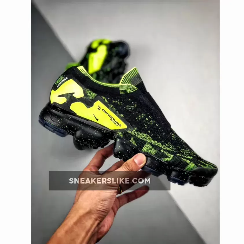 Keeping things clean, this Nike Air VaporMax Moc 2 comes dressed in a Black and Volt color combination. Constructed with Flyknit across the upper in Black while Volt detailing is seen throughout. Other details includes Acronym branding along with a speckled VaporMax Air unit.