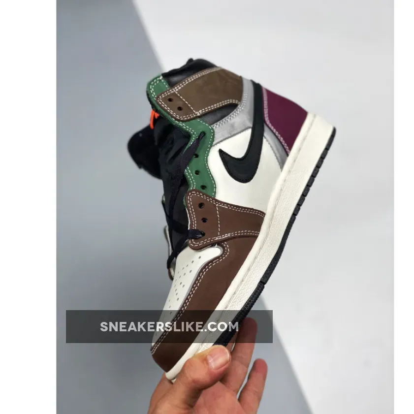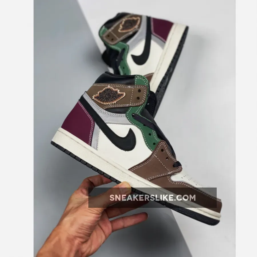 Nike and Jordan Brand’s Air Jordan 1 basketball silhouette has seen countless colourways since its debut in 1985. The roster is still growing to this day, and one of the newest additions that have caught the attention of all die-hard Jordan shoe collectors is the Jordan 1 High OG Hand Crafted. Read on for a closer look at the official images we have right here. Like most AJ1 trainers, these still come with traditional Nike and Jordan features we all know and love, such as the perforated toe boxes, sidewall Swoosh and wings logo, Jumpman branding, and many more. However, what sets this pair apart from other colourways you’ve seen before that feature clean colour blocking is that this offering opts for a wilder approach. Apart from the black leather collars, profile Swoosh logos, white quarter windows and toe box, the overlaying panels are splashed with hues of brown, green, grey, and purple. Use our Jordan 1 size guide too so you know how they fit.
