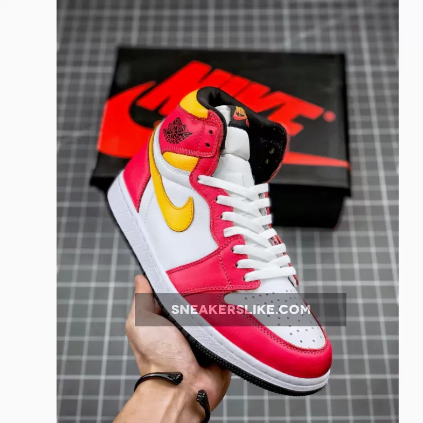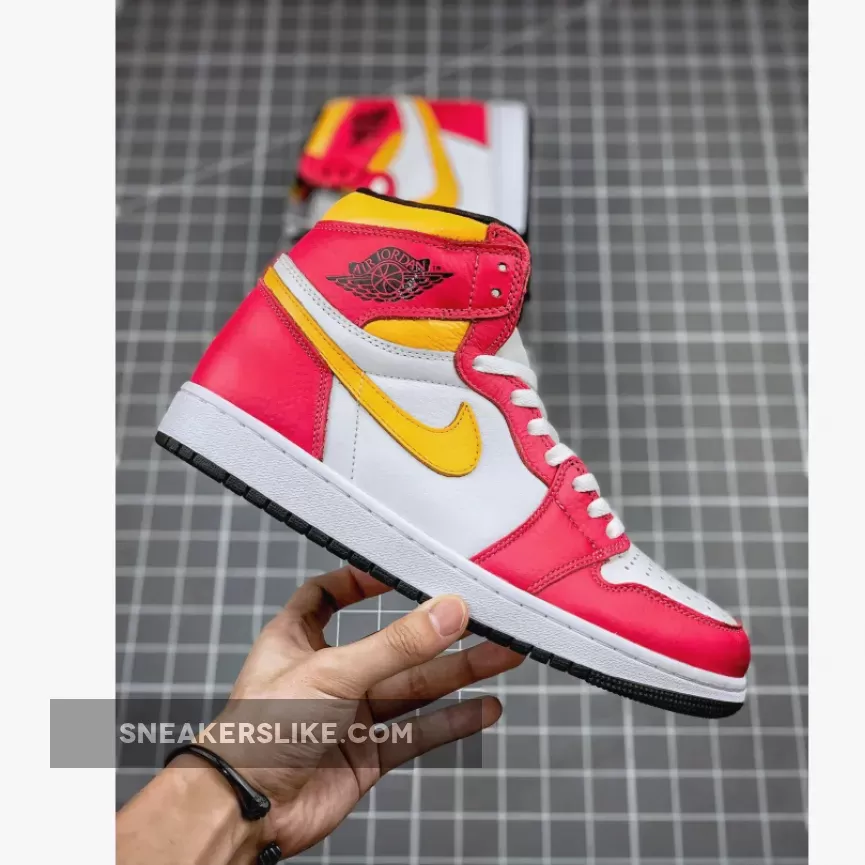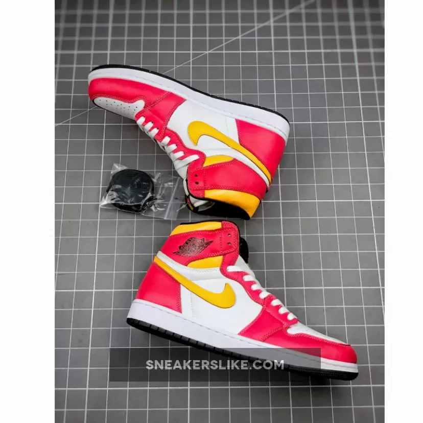 The Jordan 1 High OG Light Fusion Red is a new offering of the Jordan Brand’s world-famous Air Jordan 1 silhouette that has become one of the greatest Nike silhouettes of all time. The high top sneaker was first introduced in 1985 as Michael Jordan’s first-ever signature sneaker alongside the respective low and mid-top versions.The upcoming Air Jordan 1 is seen here with Light Fusion Red overlays constructed on a white leather base for a splash of contrast, resulting in a pair of Js with a very clean colourway that will persuade you to add these to your collection. Black accents then touch the laces and lining, and further branding details on the tongue label appear in a Laser Orange colourway together with the iconic Nike Swoosh logos on the quarter panels to complete the look.The Nike Air Jordan 1 High OG Light Fusion Red, set to launch later on this year, will have some hype around it especially in the basketball community.