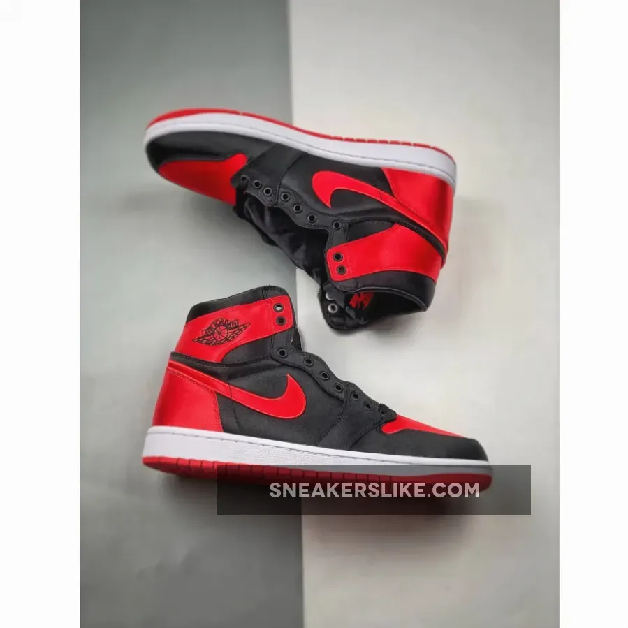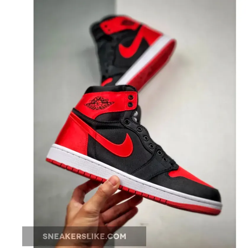 The sneakers take on the same color-blocking as they did in 1985, with “University Red” and “Black” tones sharing the spotlight. Leather panels, however, are replaced with luxurious satin overlays, injecting a softness to the women’s-exclusive remake of the Jordan 1. Eyestays take on an AJ1KO-like finish, while “Wings” logos on the lateral ankle flaps are embroidered.