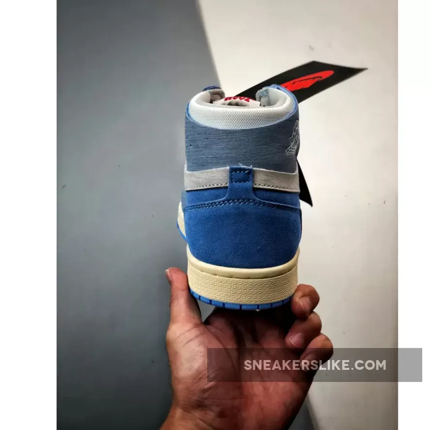 Decked in heavenly tones, the Air Jordan 1 High Zoom CMFT University Blue is truly easy on the eyes. This sneaker’s palette is likely inspired by the official hues of Michael Jordan’s alma mater, the University of North Carolina.It features an off-white leather base that’s complemented by sky-blue suede overlays and periwinkle accents. Elsewhere, the lightweight mesh tongue is branded with a ruby-red Nike label. Finally, this Air Jordan 1 High Zoom CMFT iteration.