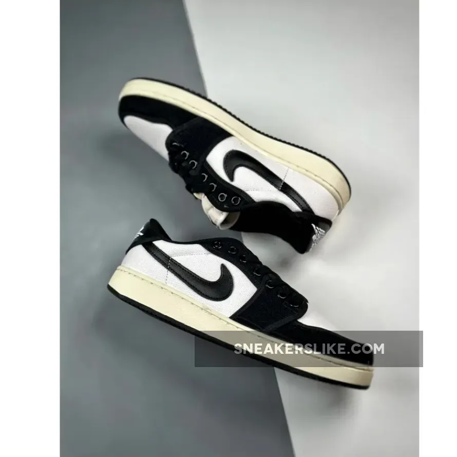 Dressed in a White, Black, and Sail color blocking giving off that “Panda” vibe. This offering of the Air Jordan 1 KO Low comes constricted in a full White and Black canvas base with Black leather Swooshes and heel overlay. Other details includes “Nike” logos on the tongue tags and insole with White Wings embroidery on the heels. White nylon tongues, sizing stamped on the inner lining atop a Sail midsole and Black rubber outsole completes the design.