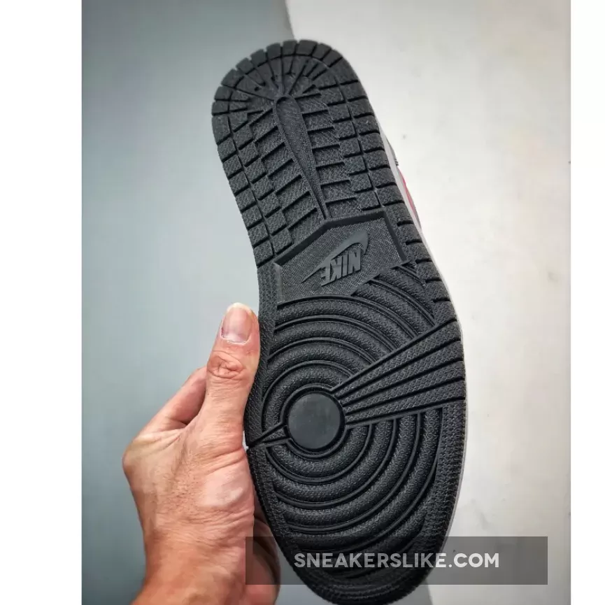Amid the monochromatic play, a clean white midsole brightens the sole unit, adding a touch of clarity to the design. Yet, the real scene-stealer is the bold crimson accents adorning the profile swooshes, heel tab, and the iconic Jumpman logo on the tongue. This dash of red isn’t merely aesthetic; it’s a salute to the legendary Chicago Bulls era, subtly intertwined within the Air Jordan lore. The hint of red amidst the monochrome setup embodies a touch of passion, hinting at a rich legacy of athletic triumphs.