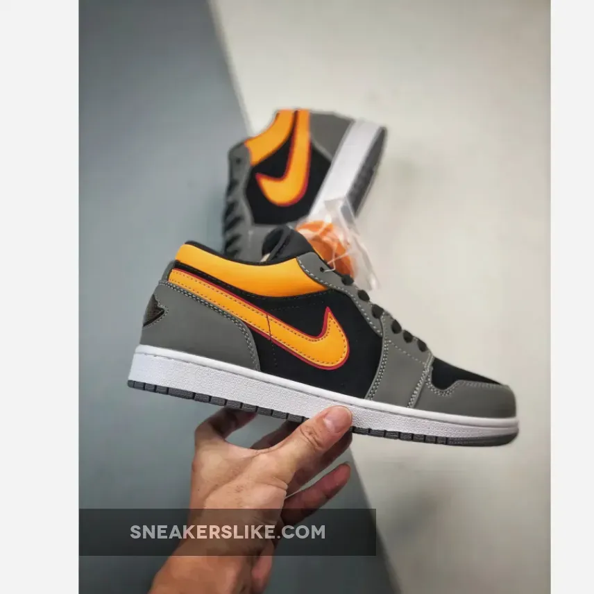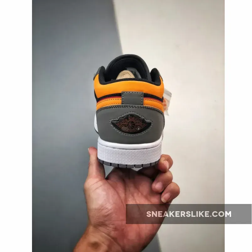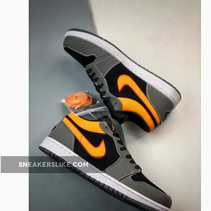 The Jordan Brand’s first signature shoe for Michael Jordan that helped fuel the sneakerhead culture we know today, the Air Jordan 1, has a fresh iteration in monochromatic colours punctuated by hits of scarlet and yellow orange. Get ready for the Air Jordan 1 Low “Black Grey Orange”.Despite the absence of an SB label, this AJ1 appears perfectly suitable for any skater, boasting additional cushioning on both the collar and the tongue. Built using a rugged suede, the black and dark grey panels look like they can stand up to regular wear and tear. The signature profile Swooshes on both the medial and lateral side walls are in bright yellow orange outlined with a deep red hue, matching the colour scheme of the Jumpman branding on the tongues.
