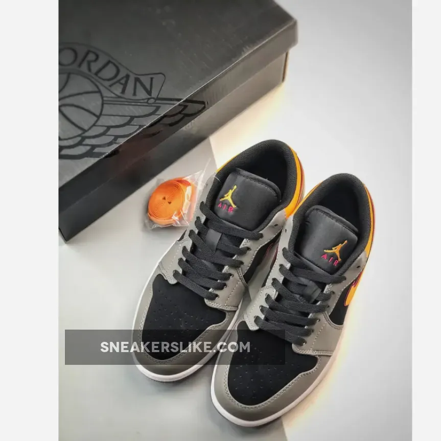 The Air Jordan 1 Low “Black Grey Orange” features a sleek design with monochromatic colorway and vibrant accents. The suede upper is durable, while the cushioning provides comfort for all-day wear. The color scheme and unique design make this shoe a standout. Overall, a stylish and functional sneaker for sneaker enthusiasts.