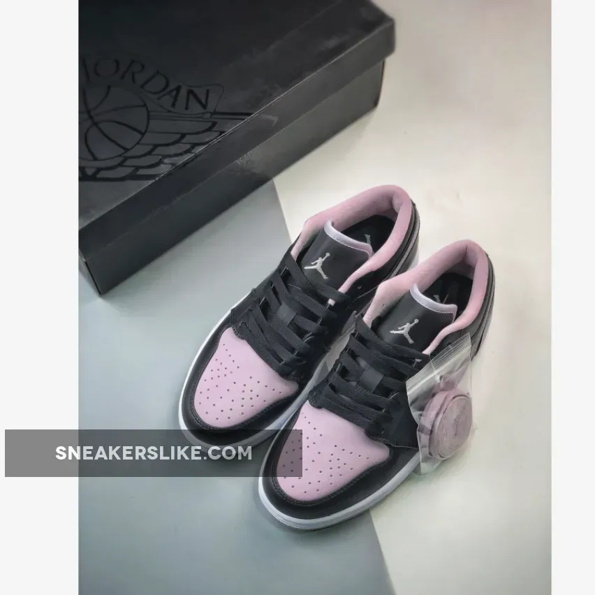 The Jordan Brand’s hugely popular b-ball sneaker designed by the late great Peter Moore and dedicated to Michael Jordan, the Air Jordan 1, has a new spring-ready offering with lavender highlights. Get ready for the Air Jordan 1 Low Black Lilac. This low-cut AJ1 is predominantly smooth black leather, from the toe cap to the mid-panels and foxing. The titular Lilac can be found on the signature profile Swooshes on both the medial and lateral mid-panels, the toe box, the tongue lining, the mesh sock liner and the embroidered Jumpman logos on the black nylon tongues.