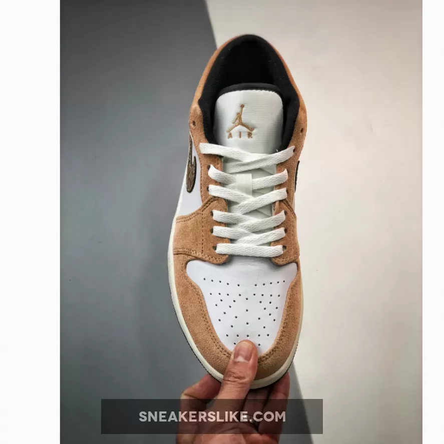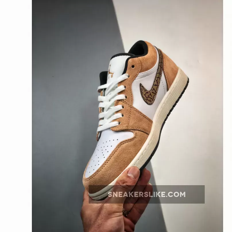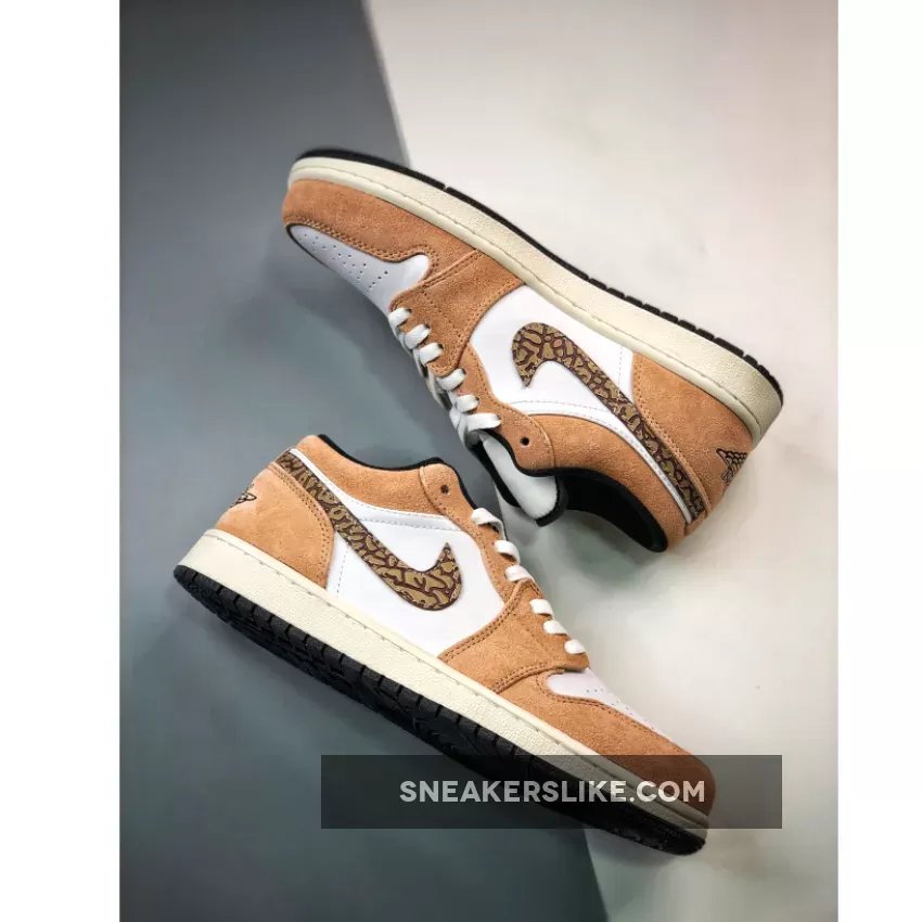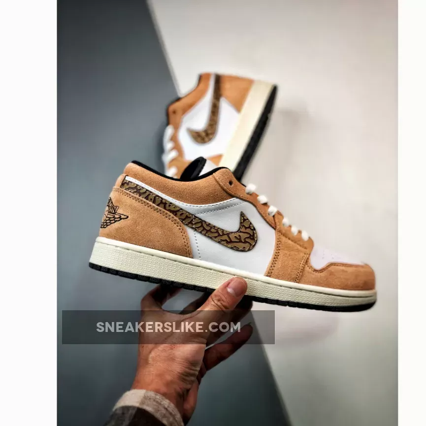 The Air Jordan 1 Low SE Brown Elephant is a low-top take on the eclectic elephant print which lands on the signature Swoosh appliqué. It’s laid over a fresh-white leather base and framed with tactile beige suede panelling via the mudguard, eye stays and heel panel. Meanwhile, hits of black come in via the tongue trim, airy mesh lining and the multi-textured outsole. In terms of comfort, you get a classic perforated toe box for perfect ventilation no matter the season. Final branding cues come in via the golden-ochre Jumpman logo on the tongue and the Wings motif on the heel.