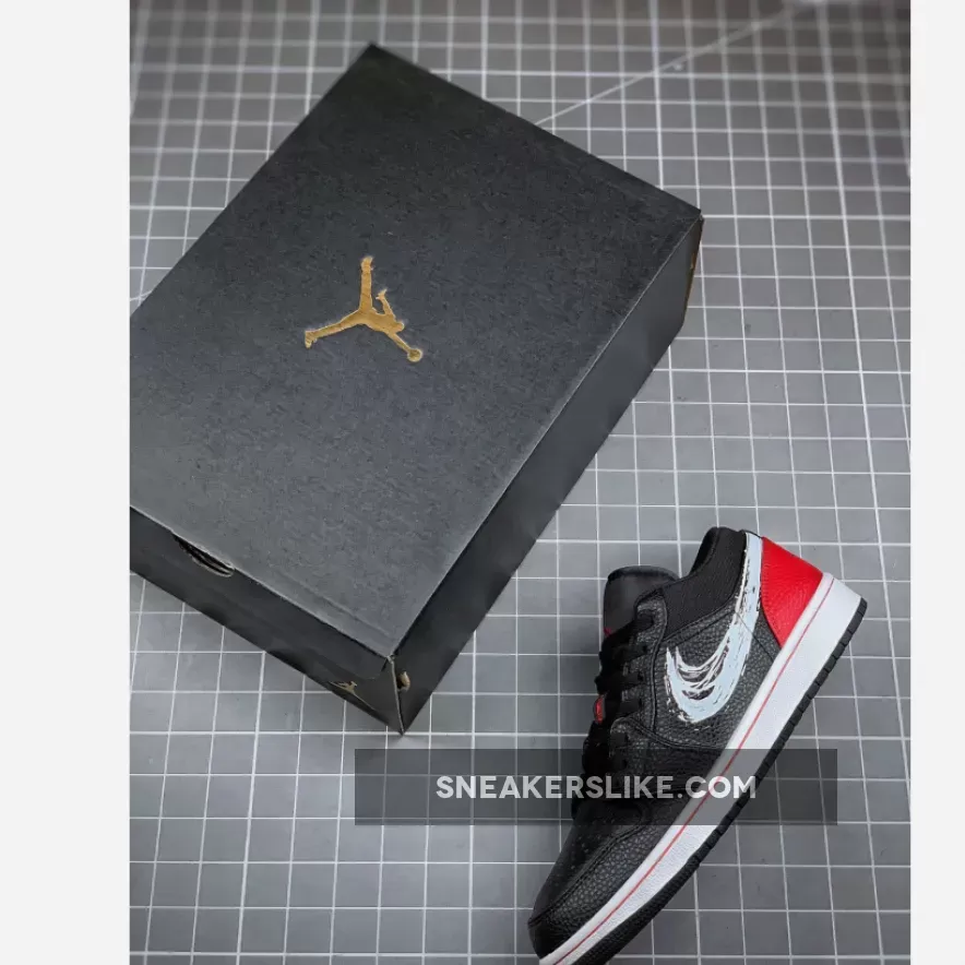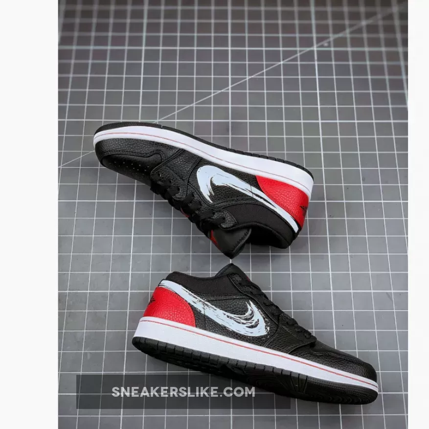 Unleash your inner artist with the brand new Jordan 1 Low Brushstroke Swoosh. A literal stroke of genius, this colourway combines a contemporary silhouette with a classic art form, resulting in a truly unique release that definitely should not be missed.Crafted from an exquisite tumbled leather throughout, the black upper acts as a canvas for a clean white Nike Swoosh that elegantly glides across the lateral and medial side panels. The legendary Jumpman silhouette is finely embroidered onto the tongue, while complementary bold red hues arrive at the heel, where you’ll also find the AJ1’s signature winged basketball motif that’s almost as iconic as the shoe itself.What is there not to love about the Nike Air Jordan 1 Low Brushstroke Swoosh? Part of the ever so popular Brushstroke Pack, make sure you keep it locked at Our Store Supplier if you a pair in your current collection.