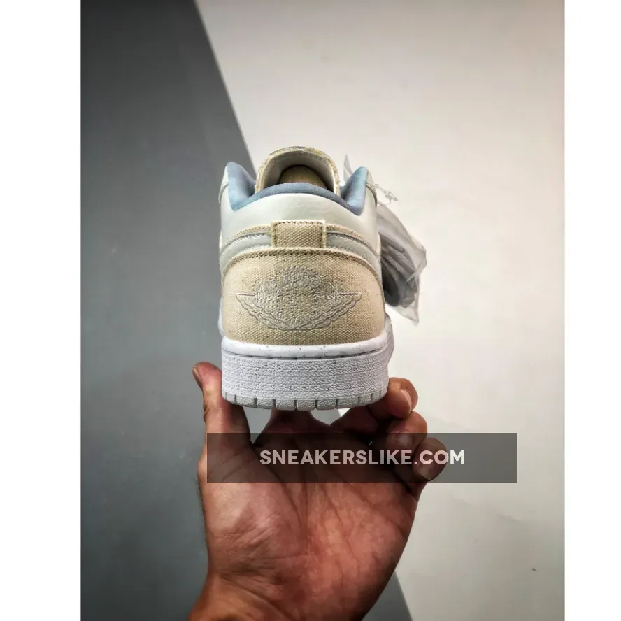 The Air Jordan 1 Low Canvas Blue Beige features a rare dainty take on the basketball slash lifestyle silhouette. Gone is the typical AJ1 colourway arrangement and in its place is an ethereal palette showcasing a light blue leather upper that’s nicely complemented with beige canvas side panels.