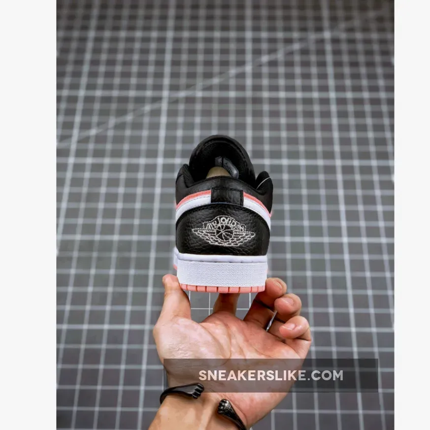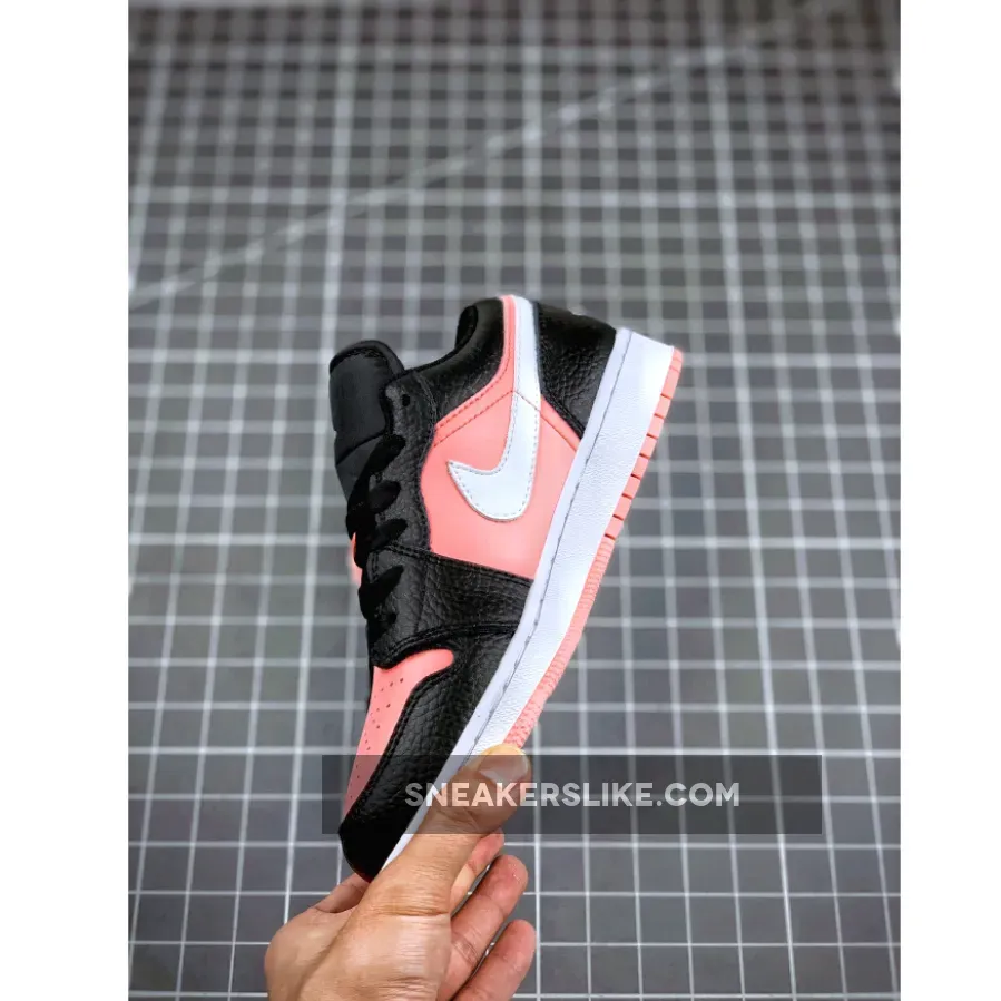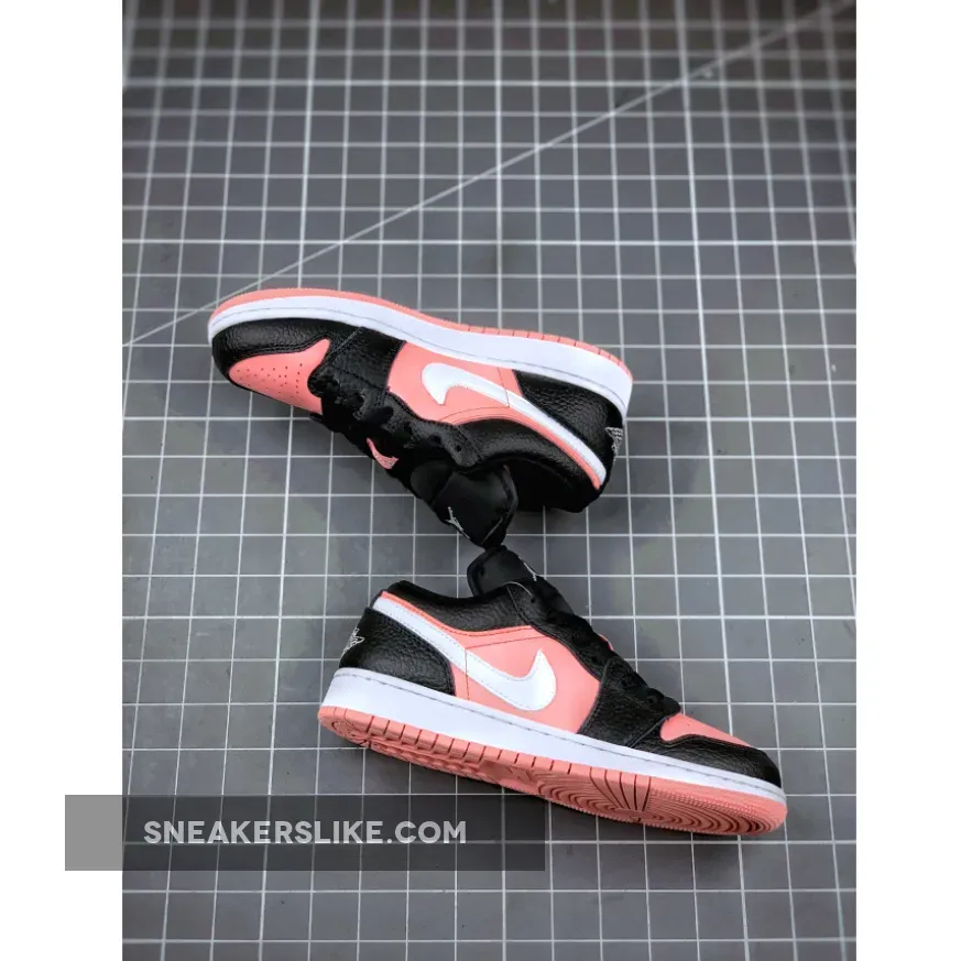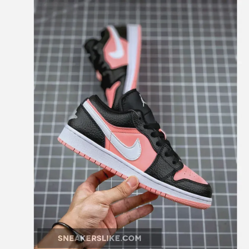 Dressed in a Dark Smoke Grey, White, and Pink Quartz color scheme. This low-top Air Jordan 1 features smooth leather in Pink on the sides and toe pairs with Dark Smoke Grey tumbled leather overlays.