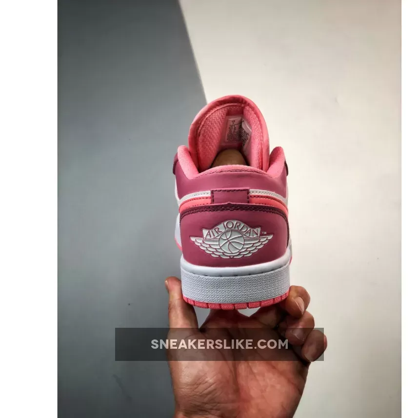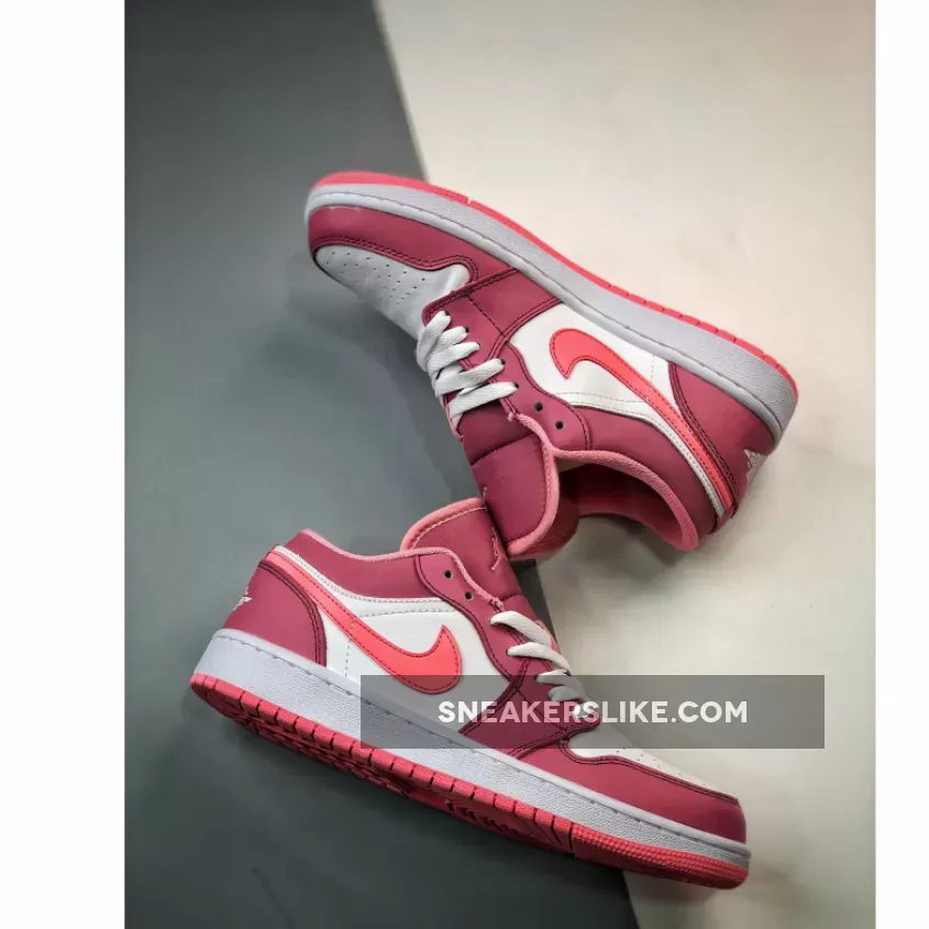 Jordan Brand’s only silhouette to feature both the Nike Swoosh and the Jordan Wings logos, the Air Jordan 1, is doused in charming shades of pink for this drop. Get ready for the Air Jordan 1 Low GS Desert Berry. This low-top smaller-sized AJ1 has a white leather base showing on the toe box and the mid-panel. The smooth leather overlays on the toe cap, the mudguard, the eye stay panel, the collar and the heel counter are in the titular Desert Berry shade. The mesh tongues follow suit. The signature profile Swooshes on both the medial and lateral mid-panels are in a light Coral hue, matching the embroidered Jumpman logos on the tongues, the tongue lining and the sock liners.