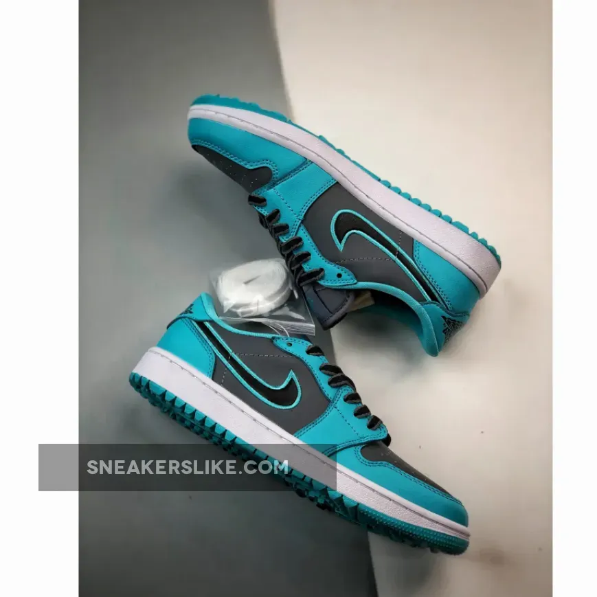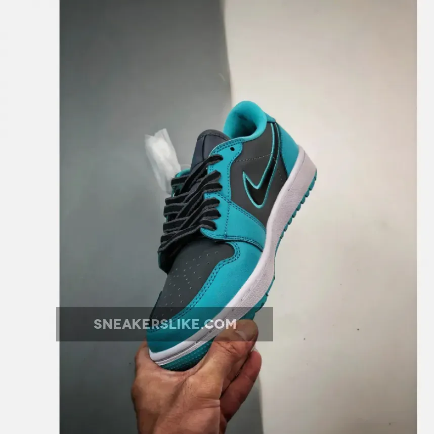 This iteration showcases a tasteful mix of Cool Grey, Black, and Gamma Blue shades. Crafted entirely from leather, the golf-specific Air Jordan 1 Low boasts perforations on the toe box for breathability. Mesh tongues and inner lining further enhance comfort. The shoe’s foundation is a Cool Grey base adorned with eye-catching Gamma Blue overlays, featuring prominent Jumpman Golf logos and golf-ready rubber outsoles.