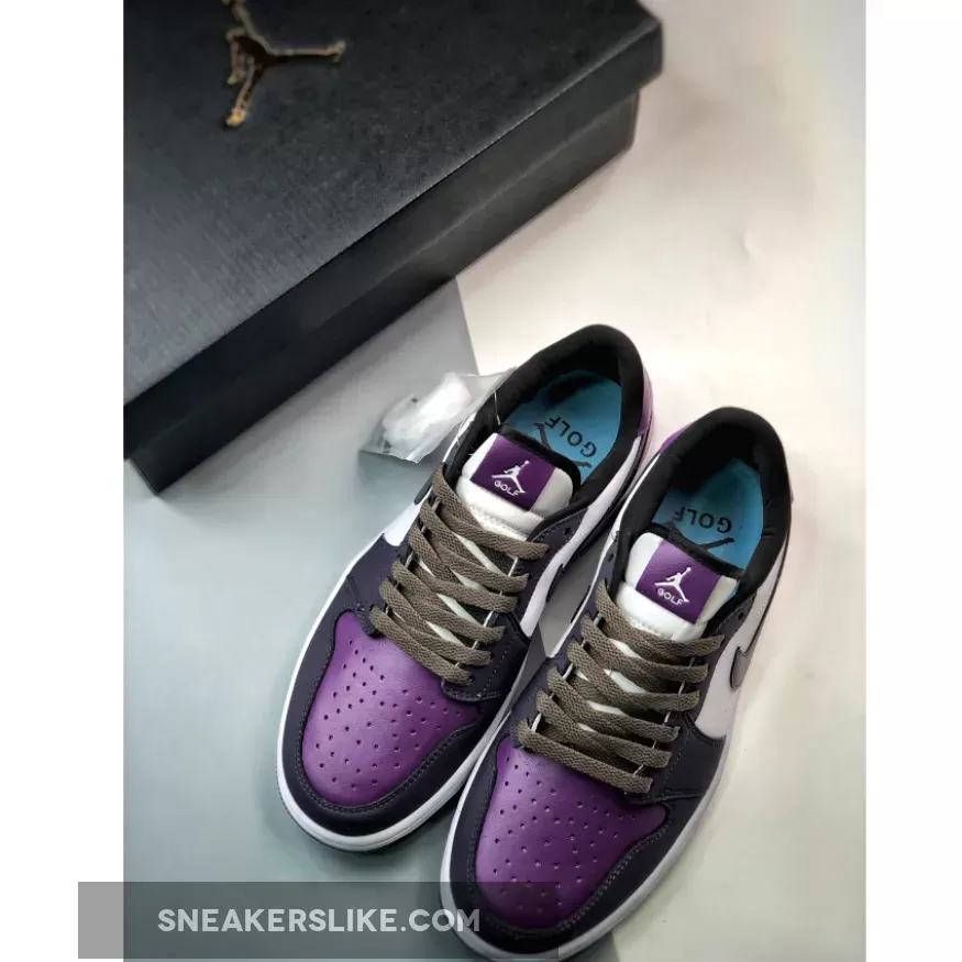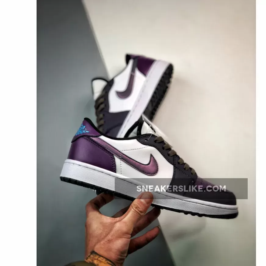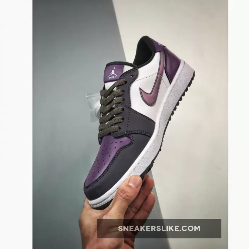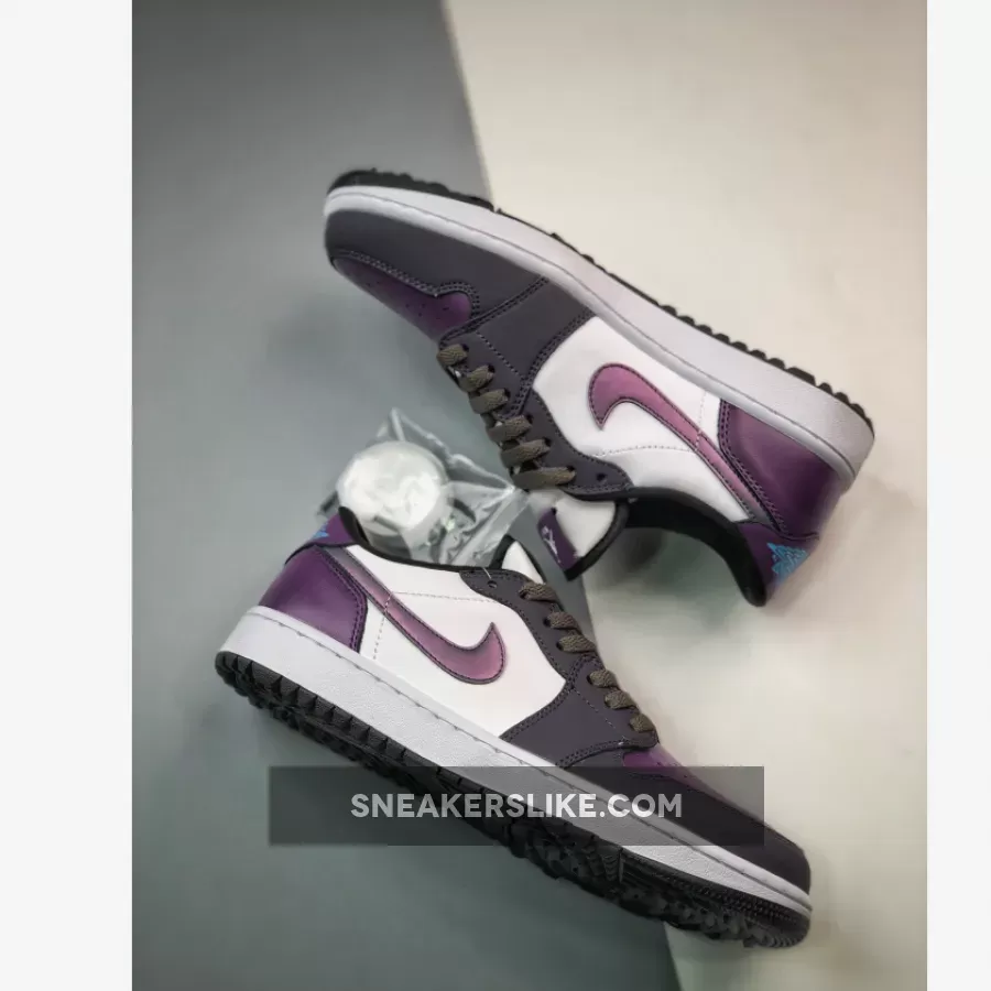 One of the Jordan Brand’s most admired sneakers of all time, the Air Jordan 1, has a smoking-hot new drop from its Golf line. Meet the Air Jordan 1 Low Golf Purple Smoke.This AJ1 Low Golf has a clean white smooth leather base showing on the mid-panels. The nubuck overlays on the toe cap, the mudguard and the eye stay panel are in the titular Purple Smoke. The profile Swooshes that glide across the medial and lateral mid-panels follow suit. Cave Purple, on the other hand, can be found on the heel tab and the heel counter. The toe box is also Cave Purple but with a unique pearlescent sheen. University Blue “Wings” logos are stamped on the heel tabs. The University Blue insoles show off Purple Smoke Jumpman logos.
