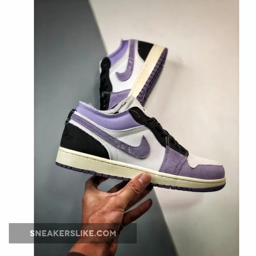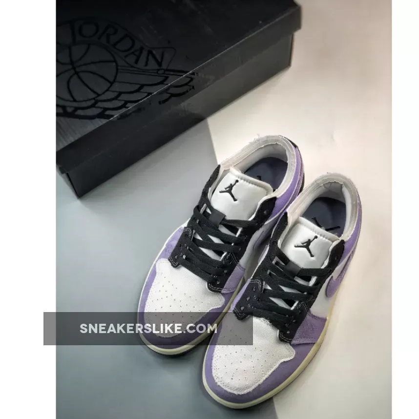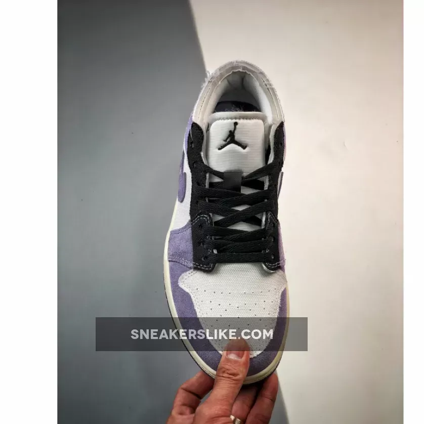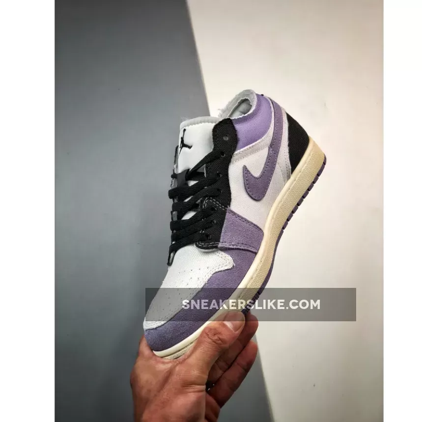 This Air Jordan 1 Low is crafted from canvas and suede materials, along with exposed foam on the collars and tongues.