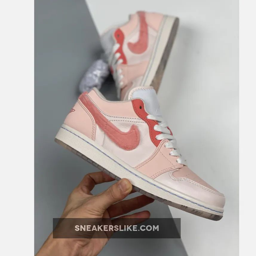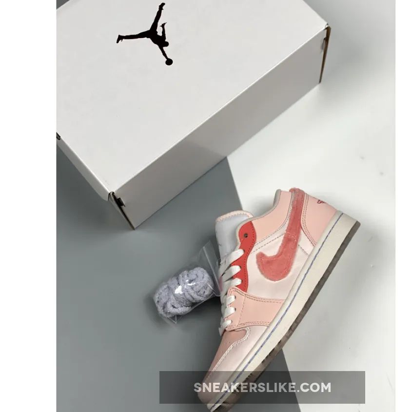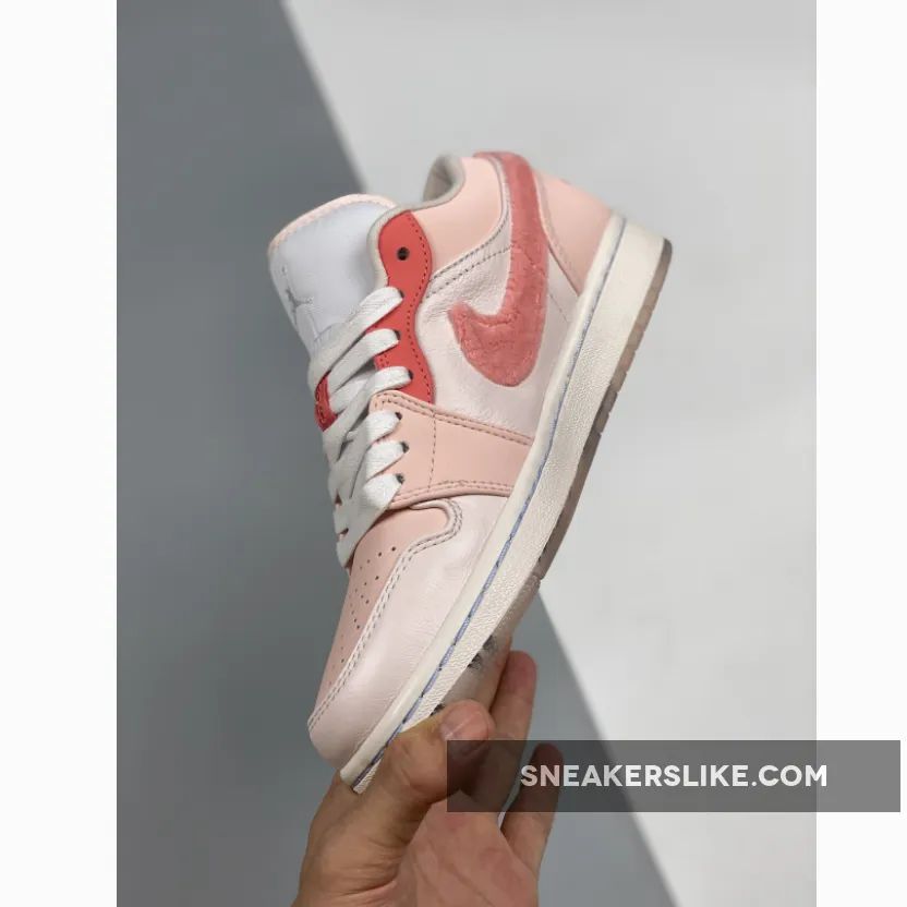 This anime-themed low-top Air Jordan 1 features a clean White leather upper paired with Pink hues used on the overlays as well as its hairy faux fur Swooshes on the sides.