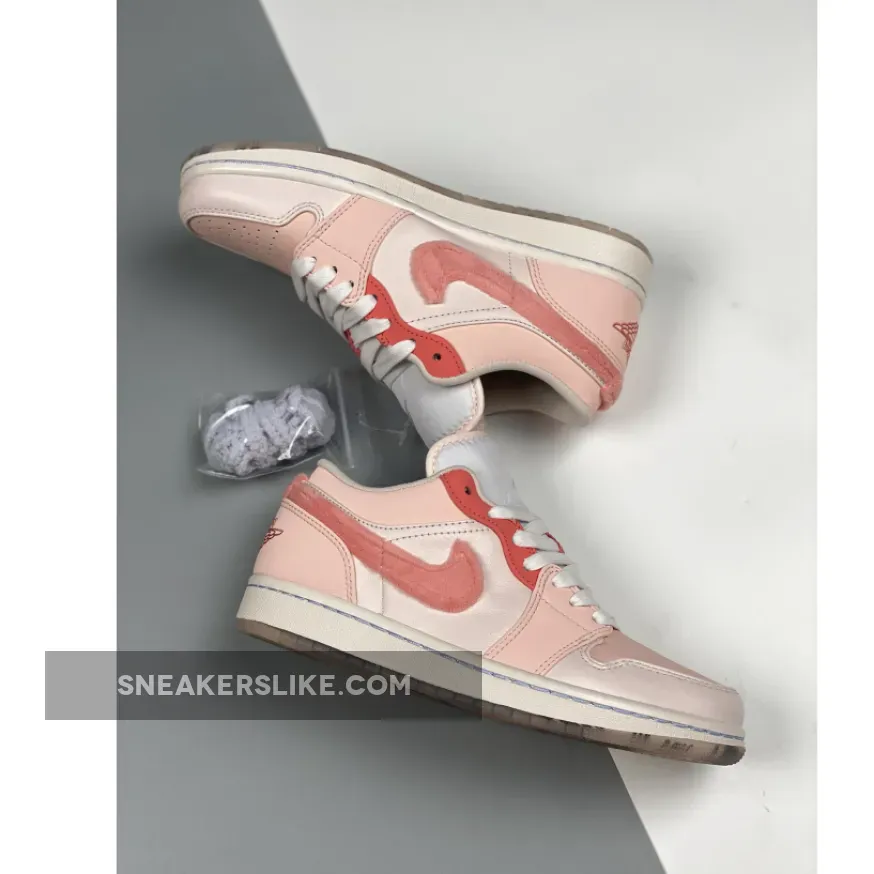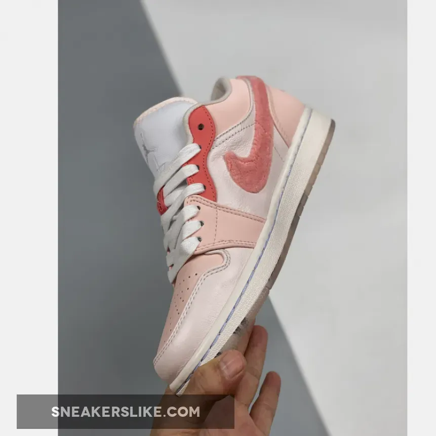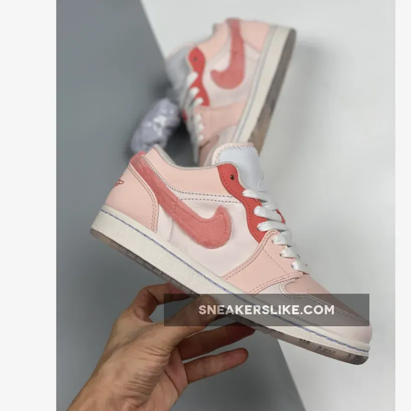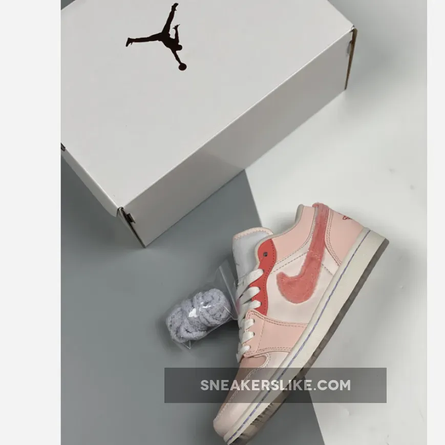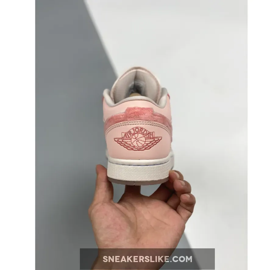 This anime-themed low-top Air Jordan 1 features a clean White leather upper paired with Pink hues used on the overlays as well as its hairy faux fur Swooshes on the sides.