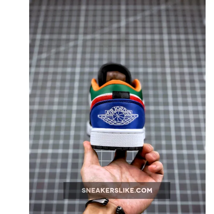With the ever increasing popularity of the AJ1 Low, Nike has now unleashed the Jordan 1 Low Multi Color, and it’s actually pretty crazy. While it may look like a conventional colourway from the front, as soon as you check out the back portion you’ll realise that there is way more than meets the eye, and here is absolutely everything that you need to know.Working on a clean white leather base, black overlays make their way to the lacing system and toe box, while the rest of the shoe is done up in vibrant blue and subtle green accents. Further contrast arrives along the bold orange sock liner, and of course, you just can’t talk about this basketball meets lifestyle model without mentioning the striking red Swoosh that elegantly glides across the lateral and medial sides, finalising the head turning aesthetic.