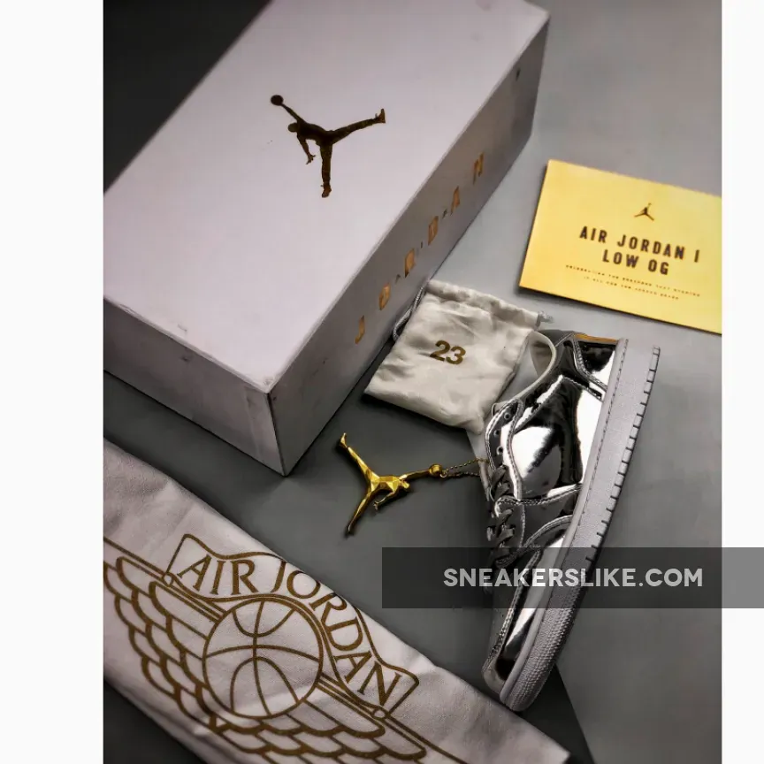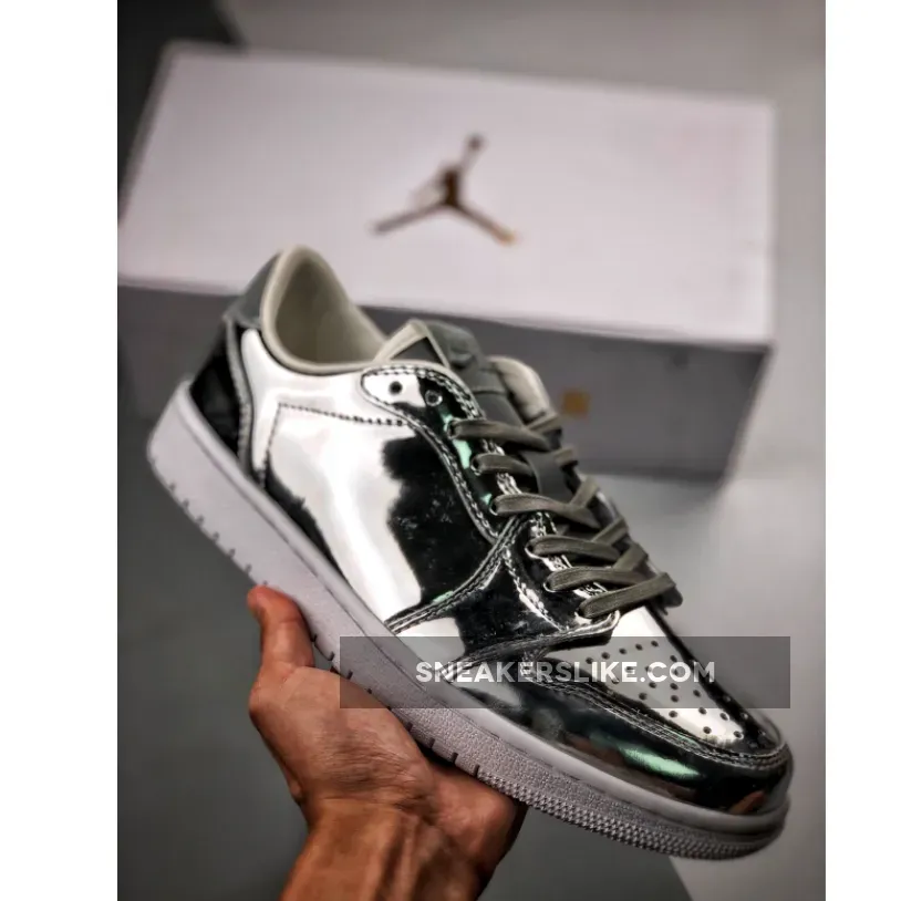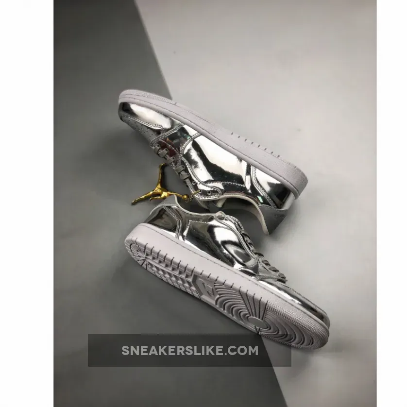 Celebrating the 25th Anniversary of that special moment. This low-top Air Jordan 1 comes dressed in a clean Metallic Silver and White color scheme. Featuring a Metallic Silver upper that sits atop a solid White rubber sole. Other details include 3M reflective detailing on the back heel.