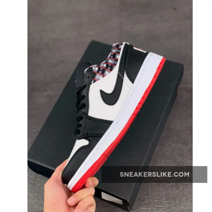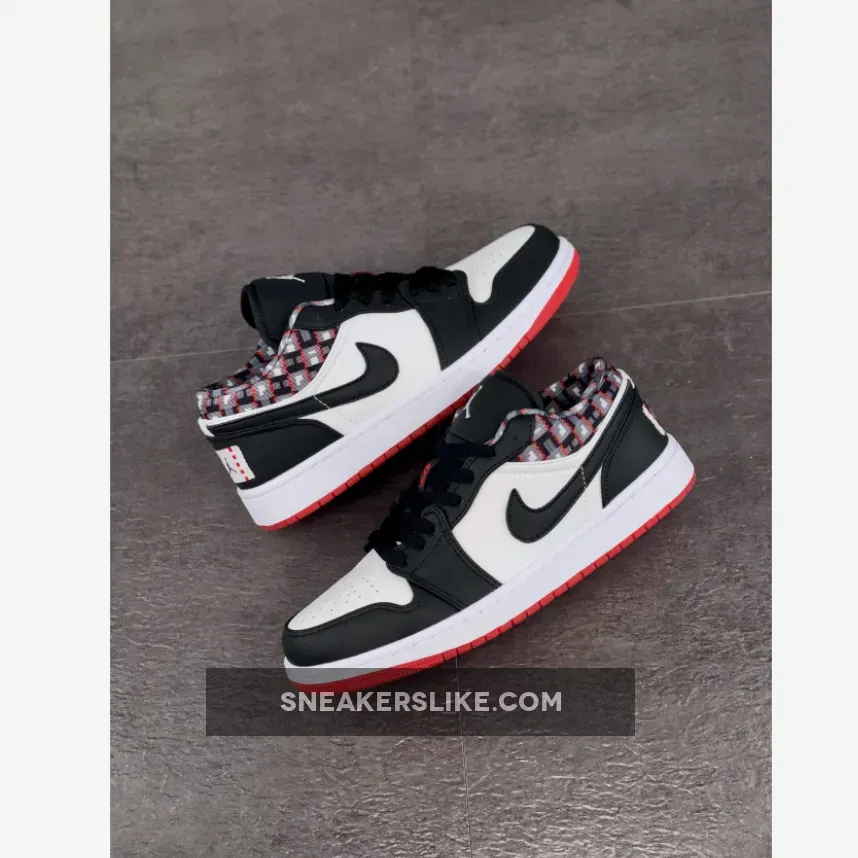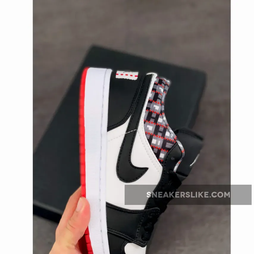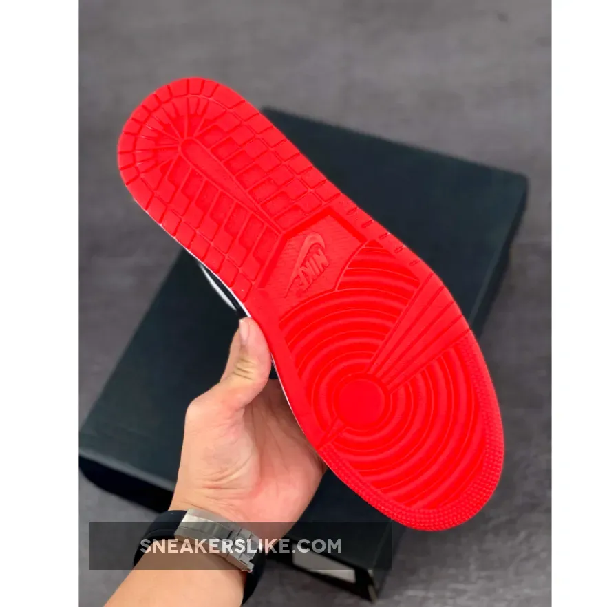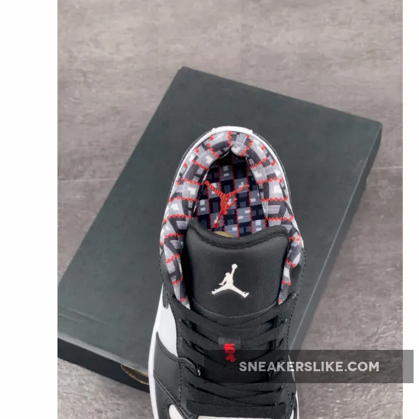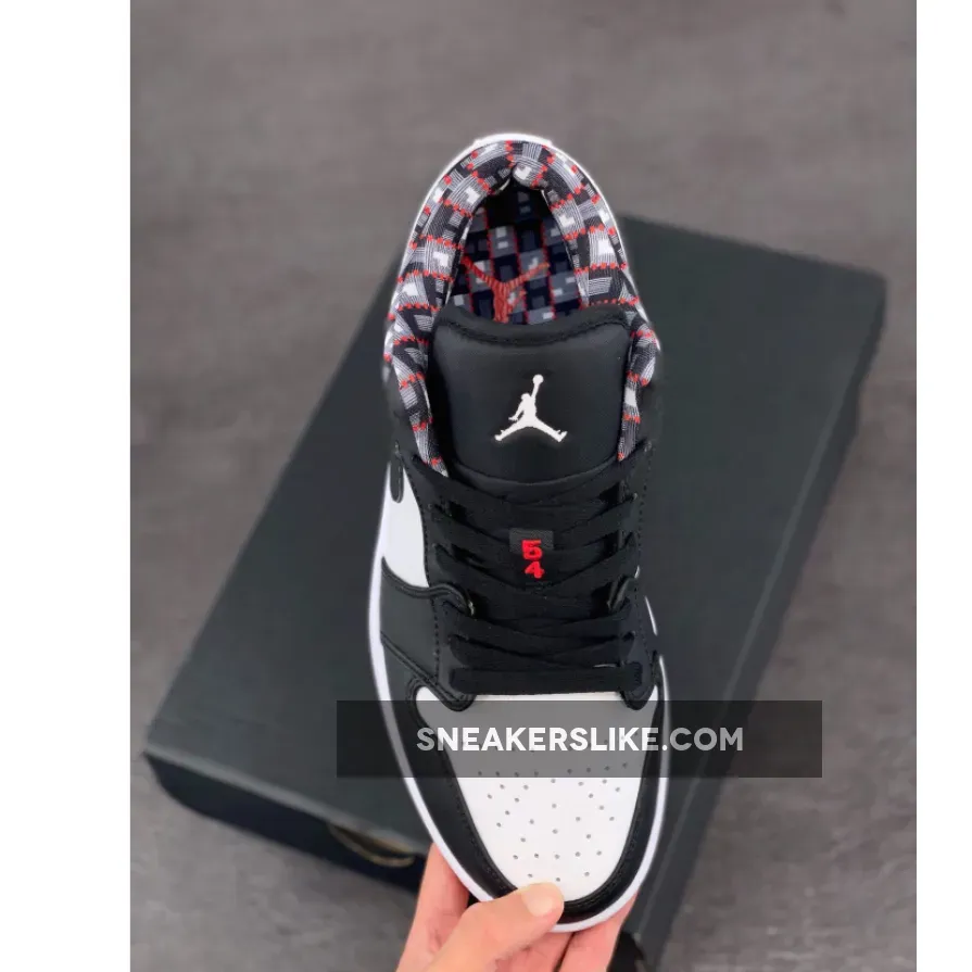 This offering of the low-top Air Jordan 1 features a White leather upper with Black nubuck overlays.