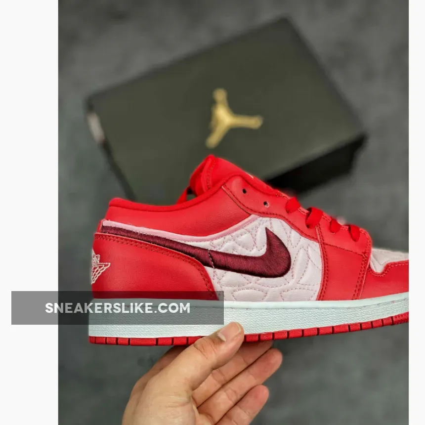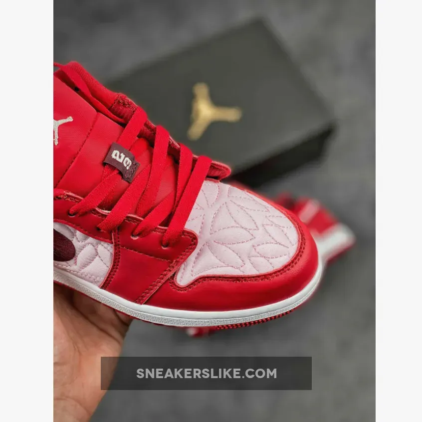 red and pink jordan 1 #jordan quilts #pink jordans low #jordan 1 low pink red #jordan quilting #jordan 1 low patchwork