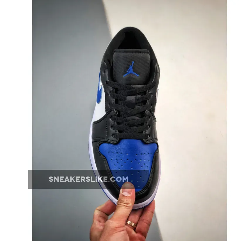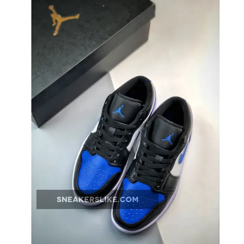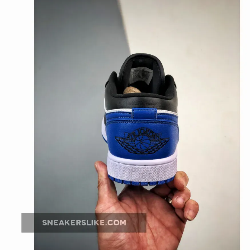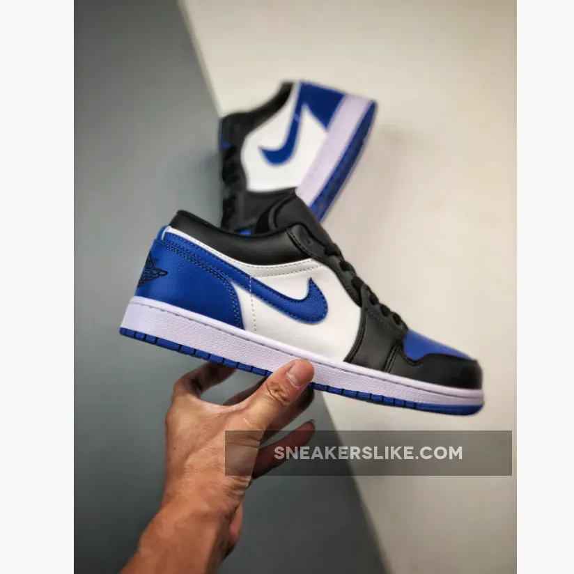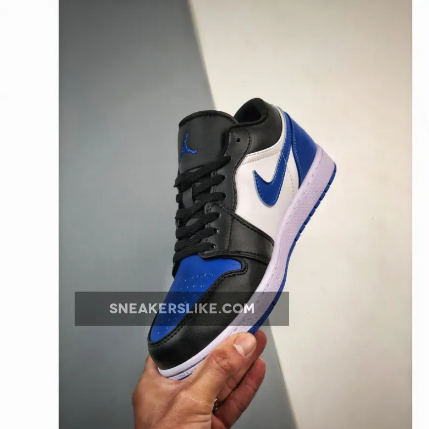 this new colorway of the Air Jordan 1 Low comes dressed in a White, Royal Blue, and Black color scheme. The sneaker is constructed in a full leather base paired with mesh used on the tongues and lining. it’s centered around a crisp withe mid-panel, with rear overlays, toe boxes, and Swooshes rocking royal blue, and forefoot overlays of black. Elsewhere you will find Black Wings on the heels. Royal colored Jumpman logos on the tongues and insoles atop a White midsole.Nylon tongues, laces, liners, and collars all arrive in black, too, with a simple white and royal rubber outsole rounding out the design.