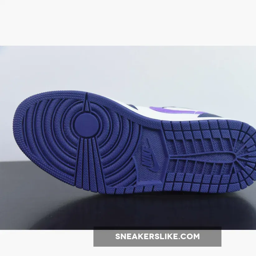 What sets this Air Jordan 1 apart is the use of a brighter purple shade on the Swoosh logos, Jumpman logo on the tongue, and Wings branding on the heel. These vibrant accents add a touch of boldness to an otherwise understated color scheme. The toebox is perforated for added ventilation, ensuring that your feet stay cool and comfortable throughout the day.