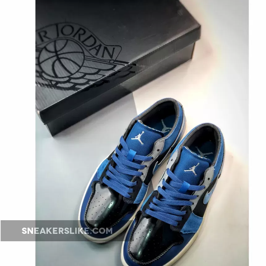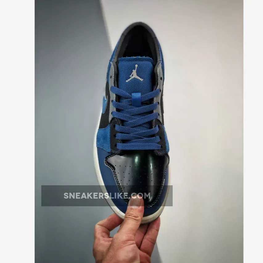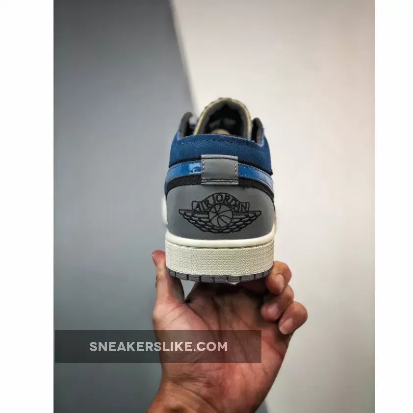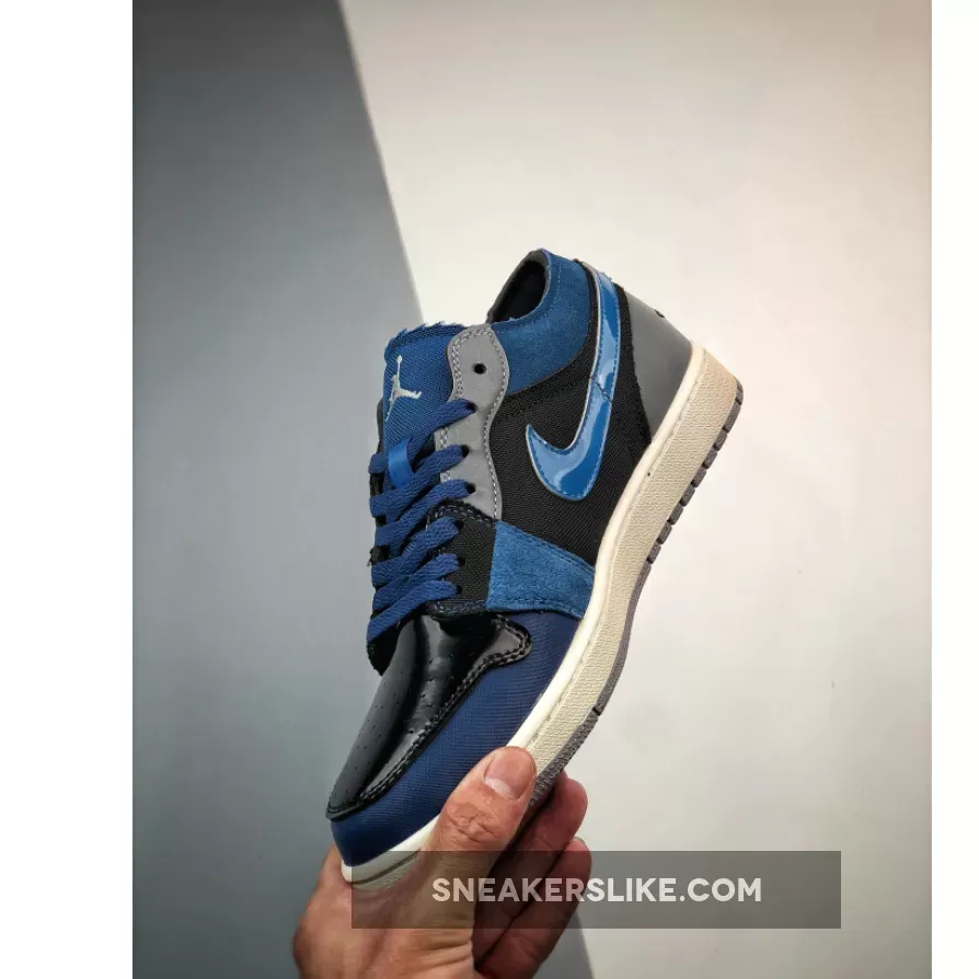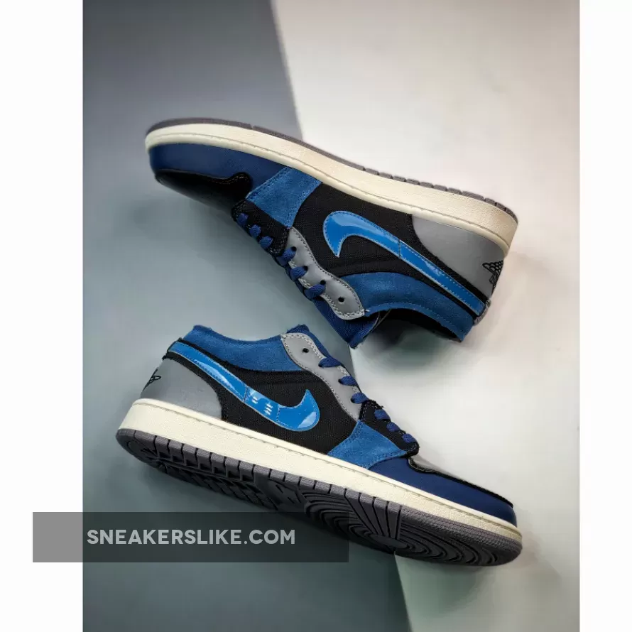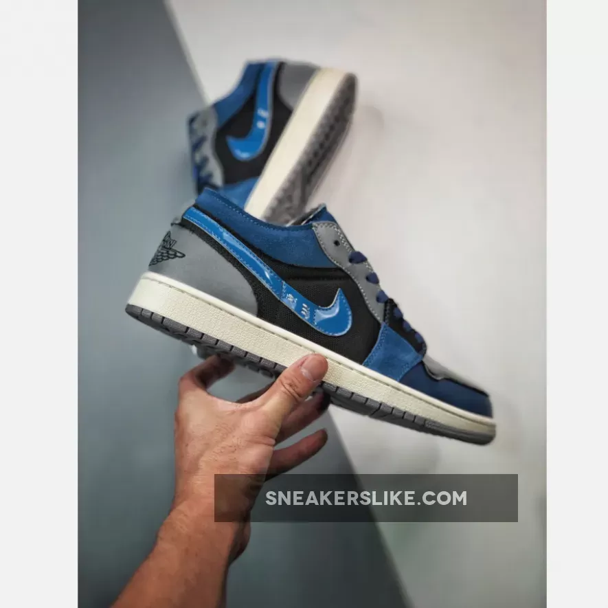 The classic Peter Moore-designed Air Jordan 1 silhouette gets a glossy blue Craft update. Introducing the Air Jordan 1 Low Craft Navy. This low-cut AJ1’s Craft DIY aesthetic mixes up multiple materials on the upper. Shiny patent leather in deep navy Obsidian stands out on the toe box. The same material is used again on the signature profile Swooshes on both the medial and lateral sides of the shoe but, this time, in a lighter shade of French Blue. The other panels on the upper are a mix of suede, mesh and leather in Obsidian, Ashen Slate and French Blue. An embroidered Ashen Slate Jumpman adorns the tongue while an embroidered Obsidian Wings logo can be found on the heel panel.