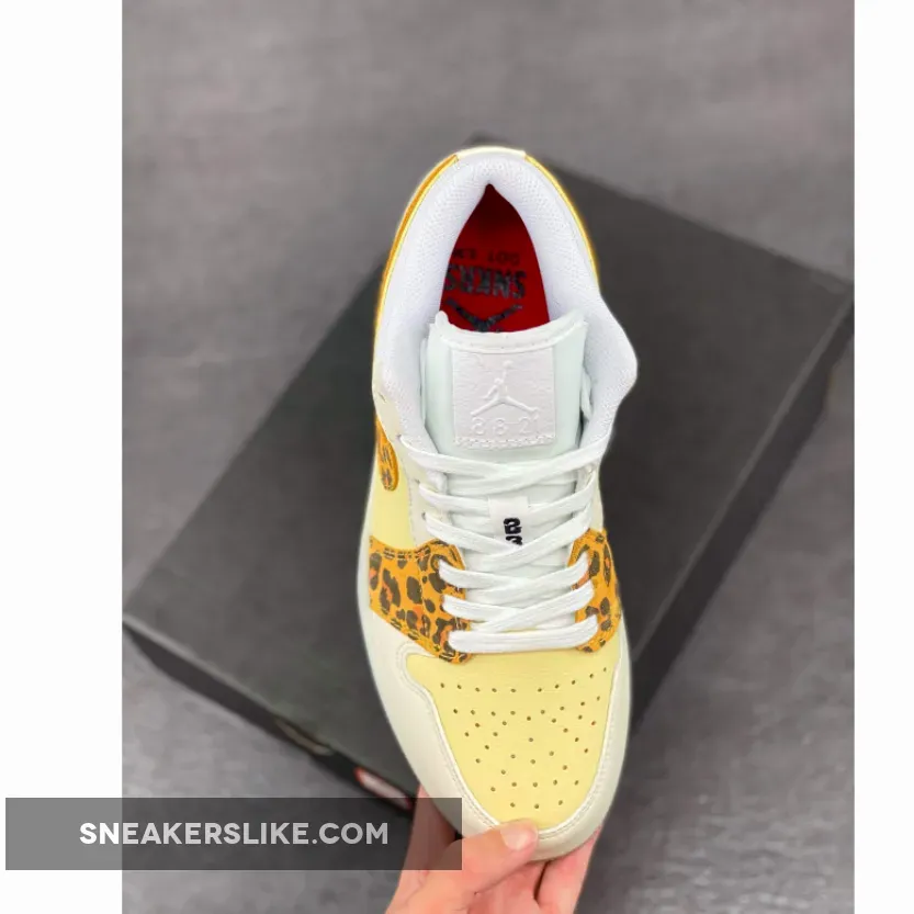 Michael Jordan’s Air Jordan 1 basketball trainers debuted on the court all the way back in 1985, and now despite being many years old, it still maintains the coveted OG features we all know and love. For the newest instalment, the Swoosh team and Jordan Brand have put together a funky colourway to celebrate SNKRS Day titled the Air Jordan 1 Low SNKRS Day. We’ve got a closer look at the pair right here, so read on for more.This AJ1 rendition arrives with a low-top profile built with a premium leather foundation in a luscious cream hue from heel to toe. The padded mesh collars are given a simple colour, but contrasting this neat setup are the profile suede Swooshes and forefoot eyelets in a leopard print coating.With that aside, MJ’s iconic branding still comes into play with a Jumpman logo on the tongue and wings motif debossed on the rear region.