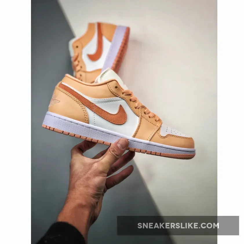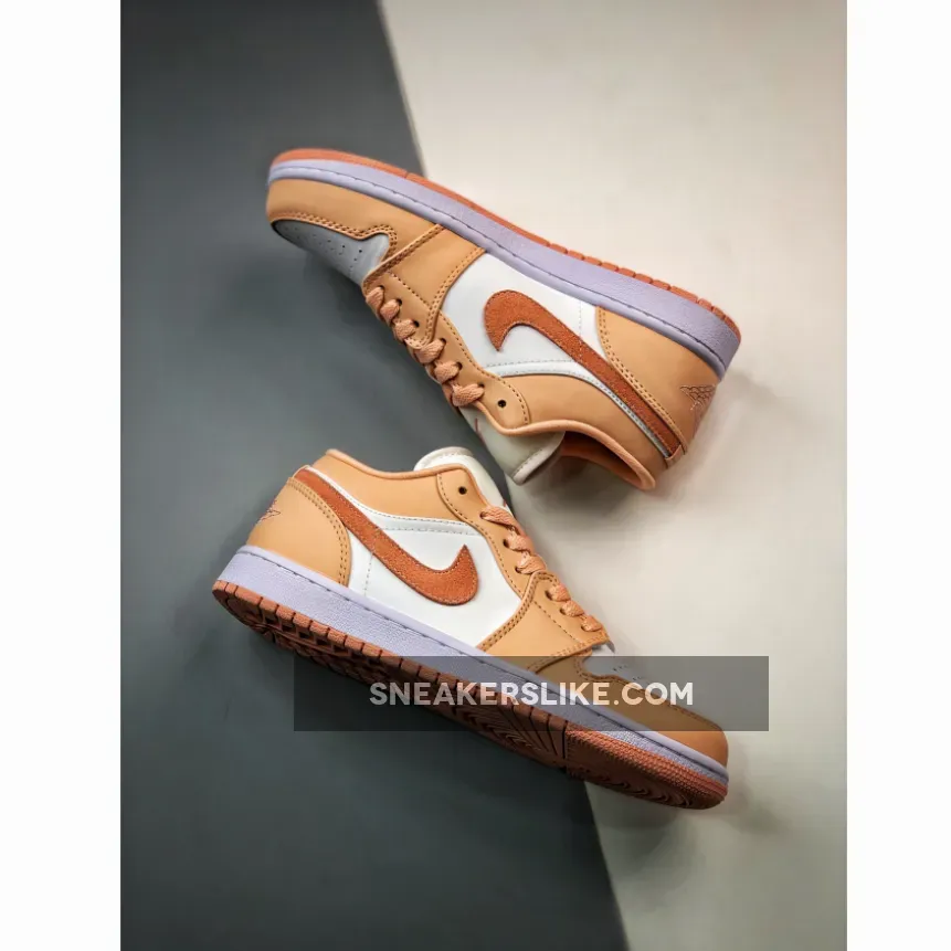 Solid design! Love the Sunset Haze/Bright Citrus colorway & the unique sunset-inspired design. Premium materials & breathable construction make these Air Jordan 1 Low’s a must-have for any sneakerhead. #AirJordan1Low #SunsetHaze #SneakerGoals