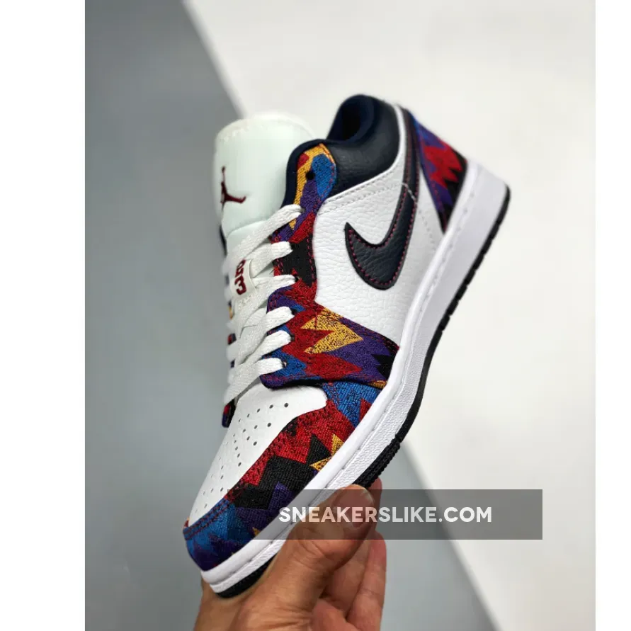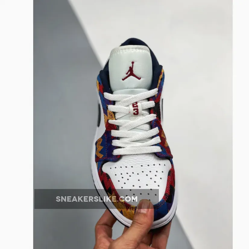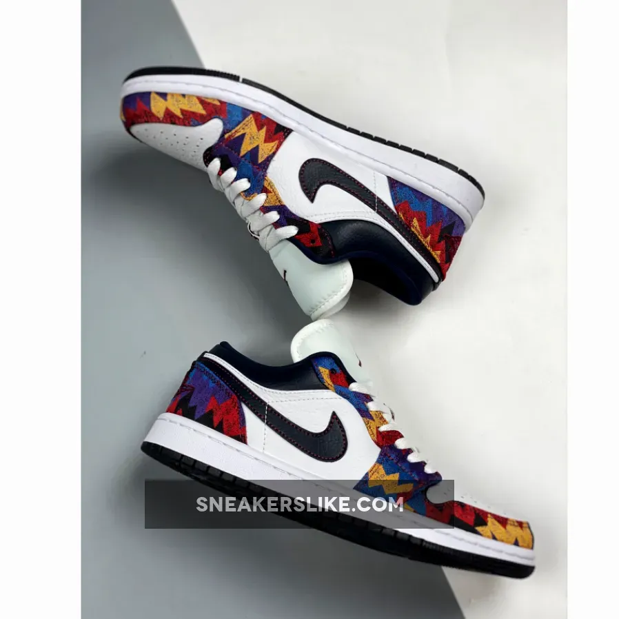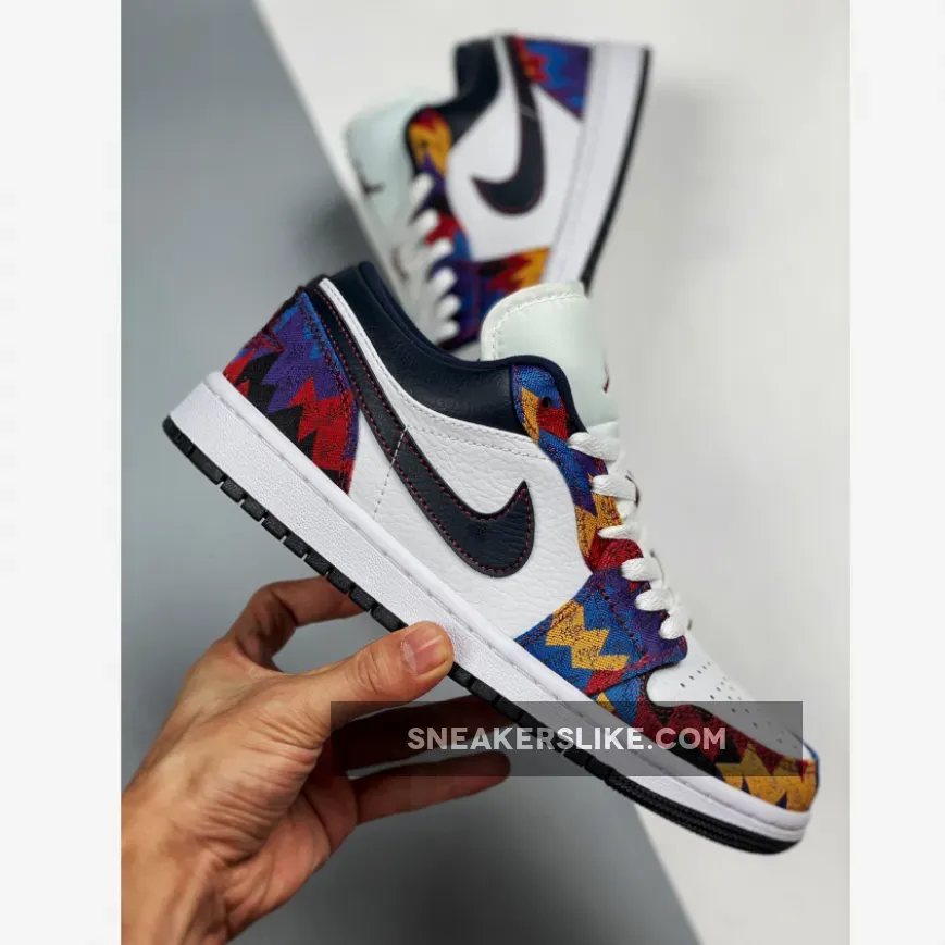 Much like the Air Jordan 7, this Air Jordan 1 Low features a White leather base with Black leather on the Swooshes and ankle collar. Highlighting the shoe are viviv graphic print overlays to match MJ’s iconic sweater worn back in 1992.