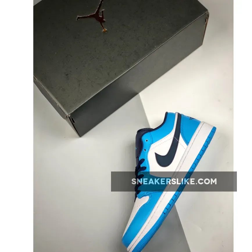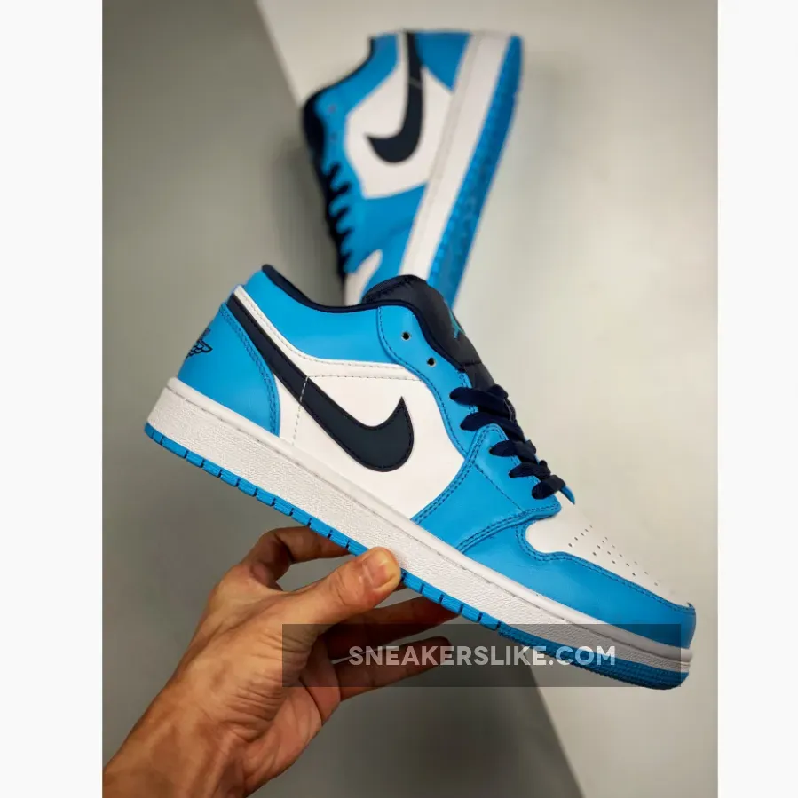 The Air Jordan 1 Low UNC University Blue is the latest addition to the Air Jordan 1 Low. This pair proudly shows off the team colour of Michael Jordan’s alma mater, the University of North Carolina. This sky blue in smooth leather is set off against a white toe box, quarter and midsole.