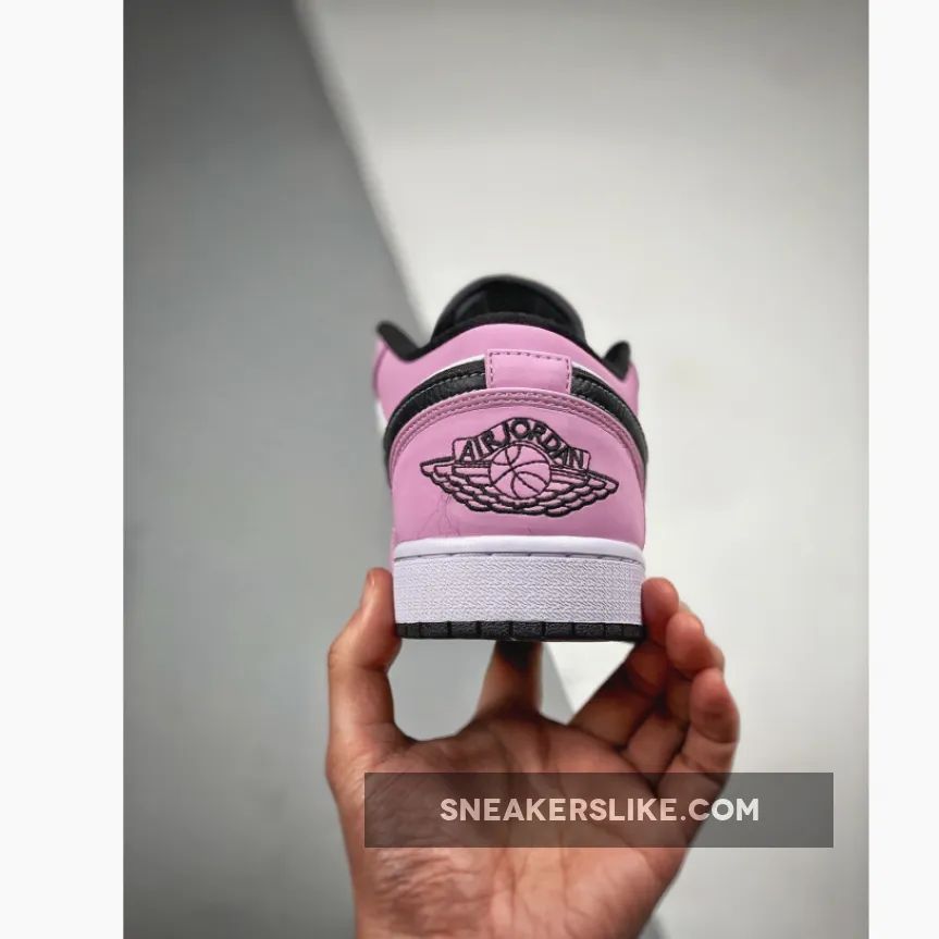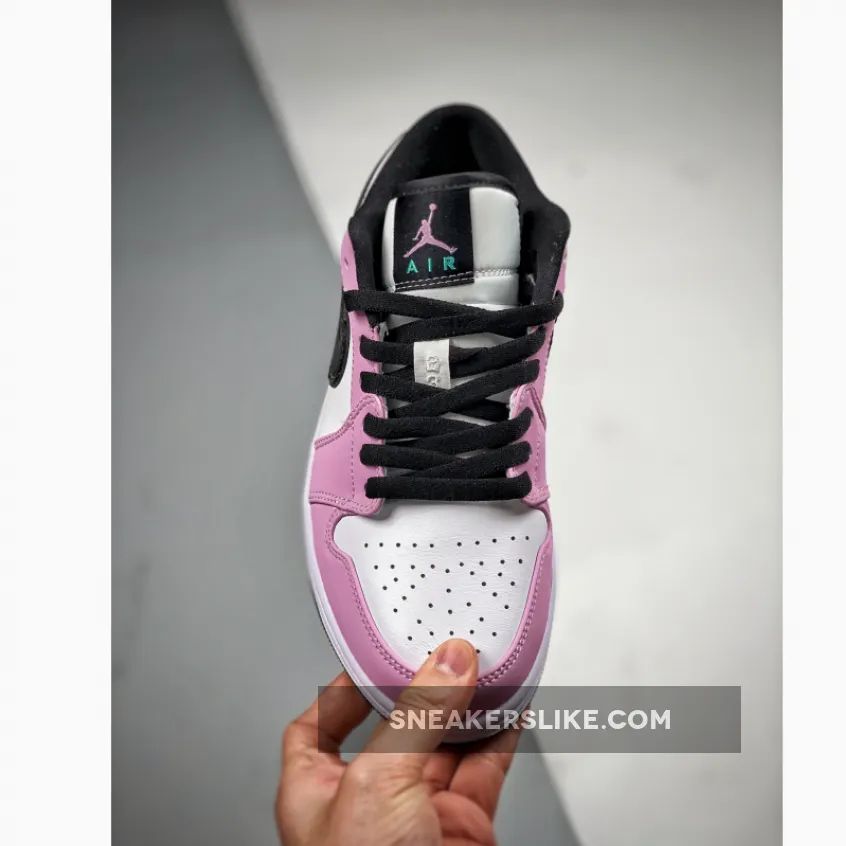 Dressed in a Violet Shock, Black, and Tropical Twist color scheme. This edition of the low-top Air Jordan 1 features a White leather base with Purple leather overlays up front and perforated suede in the rear.