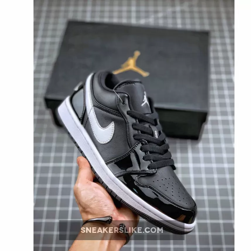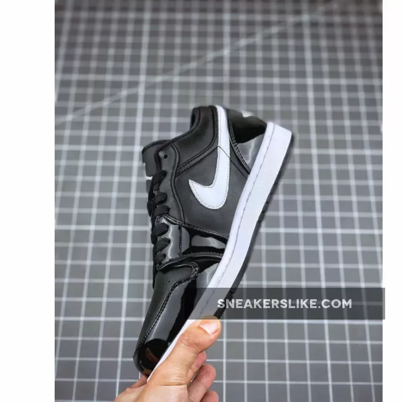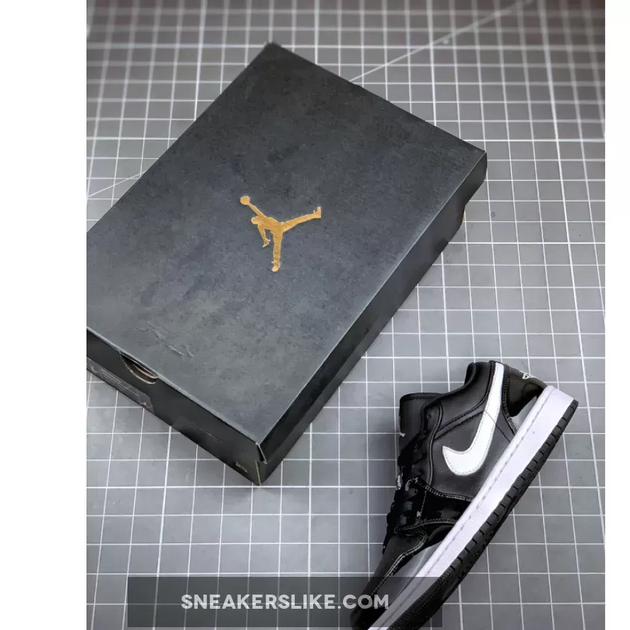 This low-top version of the Air Jordan 1 comes with Black leather across the upper while the same shade lands on the mesh tongue, laces and outsole. Following is the use of White on the branding located on the tongue, insoles, Swoosh logos, stitched Wings on the heel and midsole.