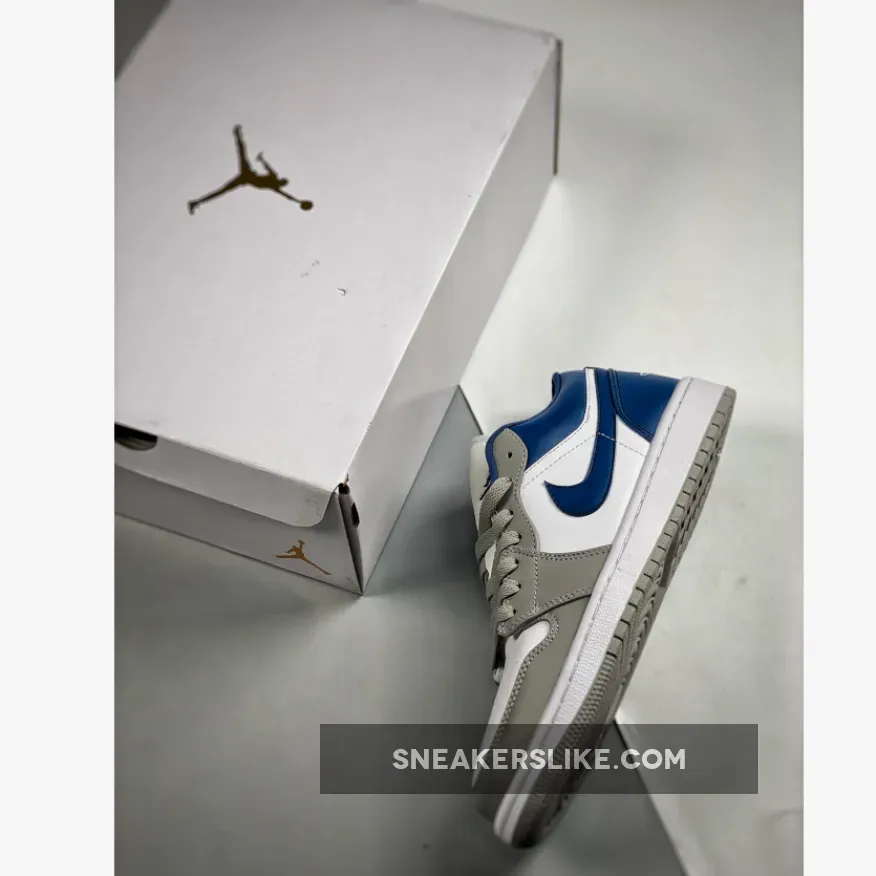 Unarguably the piece to wear for breezy casual days, the Air Jordan 1 Low White Grey Blue is designed to put a stylish spin on your everyday ensembles. This pair’s simple upper — featuring a smooth white leather base, supple grey forefoot overlays and cobalt blue accents at the back — exudes effortless elegance. As an easy-to-style sneaker, you can match it with any summer ensemble.