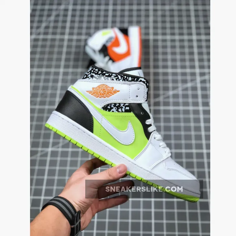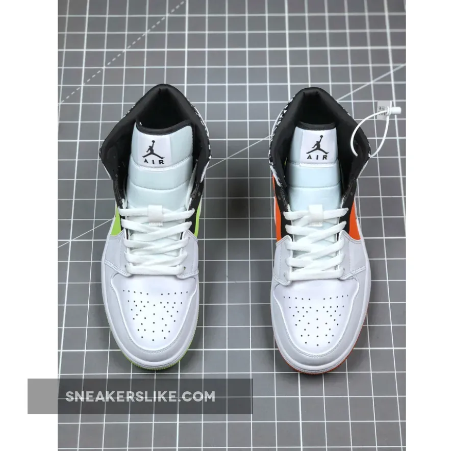 this mid-top iteration of the Air Jordan 1 comes with White leather on the base while the same shade is applied to the Swoosh logos. Both White and Black form a unique graphic on the ankle which is similar to composition notebooks.