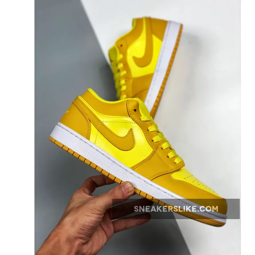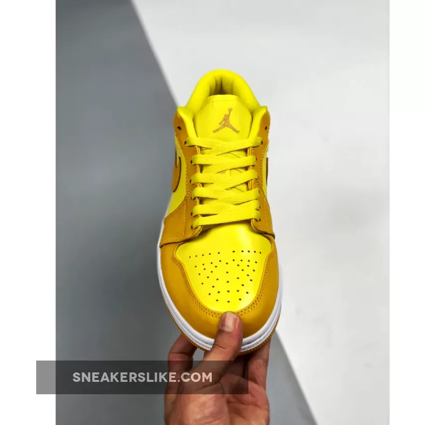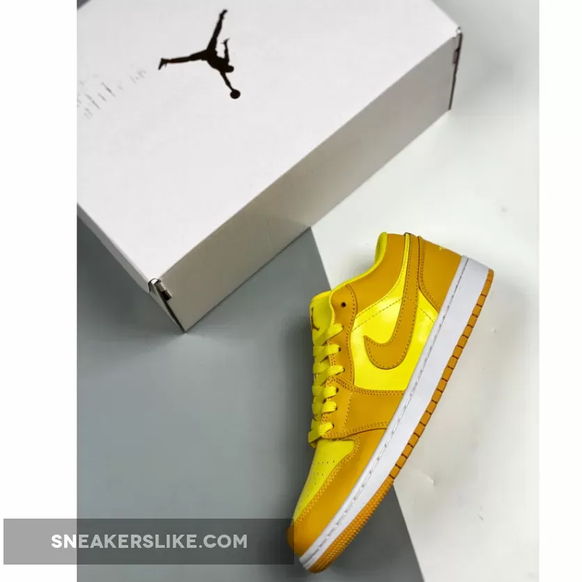 If you’re looking for a pair of kicks effortless to style during the hot summer season, then the Air Jordan 1 Low Yellow Gold is everything you need. We’ve got a detailed look at the pair right here so read on for more.Michael Jordan’s first-ever signature basketball sneakers have remained a relevant style on the hardwood court as well as in the fashion industry. Though it’s certainly made for basketball performance, the silhouette has hosted some of the most iconic collaborations to date with well-known fashion designers such as Virgil Abloh and Kim Jones.This latest low-top iteration is kept classic with no other names involved, only Nike and Jordan Brand as always have been. It sports a premium leather construction in a soft yellow hue embraced with golden yellow overlaying panels for a subtle pop of contrast. MJ’s signature Jumpman insignia marks the tongue and his famed wings logo debossed on the heel completes the legendary basketball trainers. Also, use your Air Jordan 1 size guide so you know how they fit.