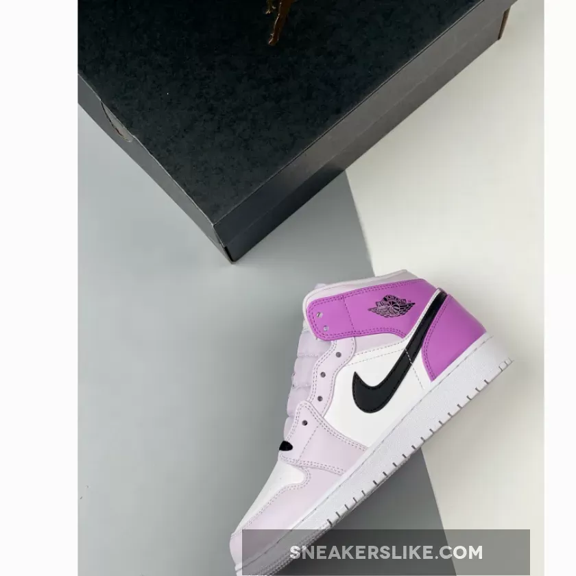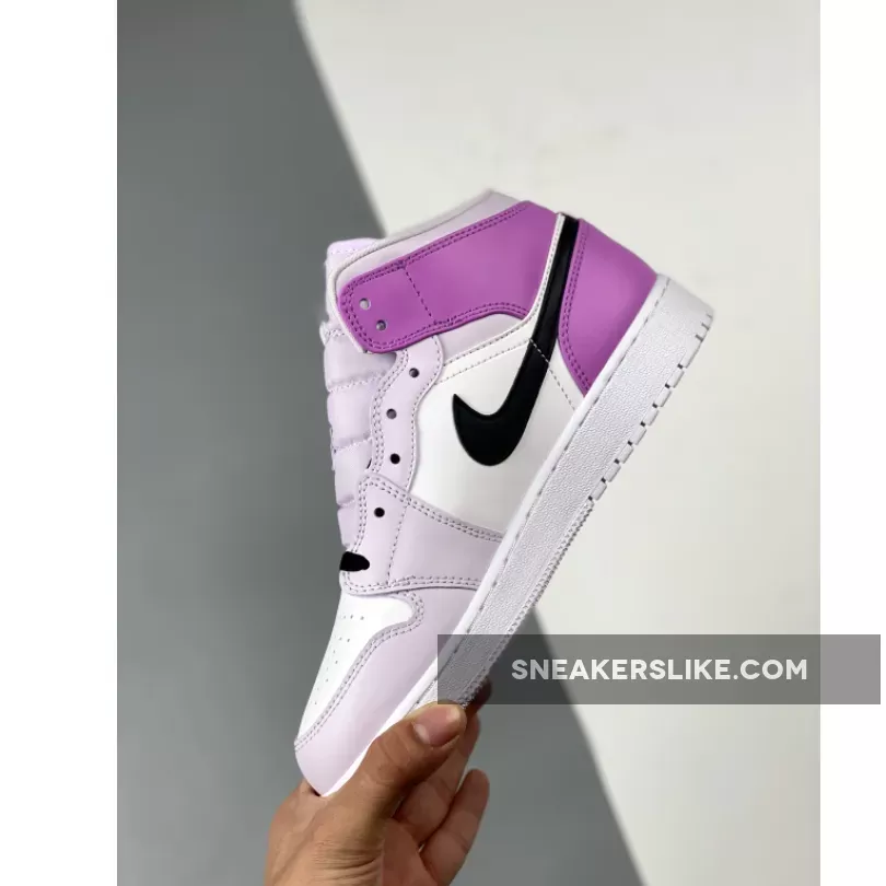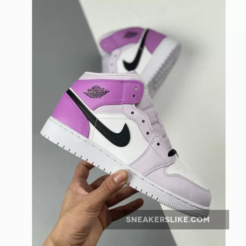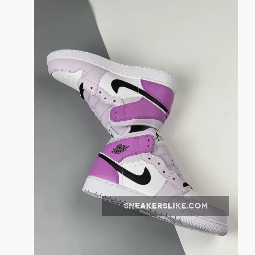 Michael Jordan’s AJ1 basketball shoe remains an all-time favourite despite being almost 40 years old. Alongside high-heat collaborations, Nike and Jordan Brand continue to push in-line iterations in all gender sizes. The Air Jordan 1 Mid GS Pink Lavender in particular is offered in grade school sizes and features a tri-toned design guaranteed to elevate any outfit. Like most GR designs, this Jordan 1 Mid is crafted with smooth leather panels throughout. Classic Nike and Jordan branding details arrive in black via the form of Swoosh logos on the lateral and medial sides, Wings motif on the collars, and Jumpman motif on the tongues. The counterparts see a crisp white hue, except the rear segment, which opts for a bold lavender tone.