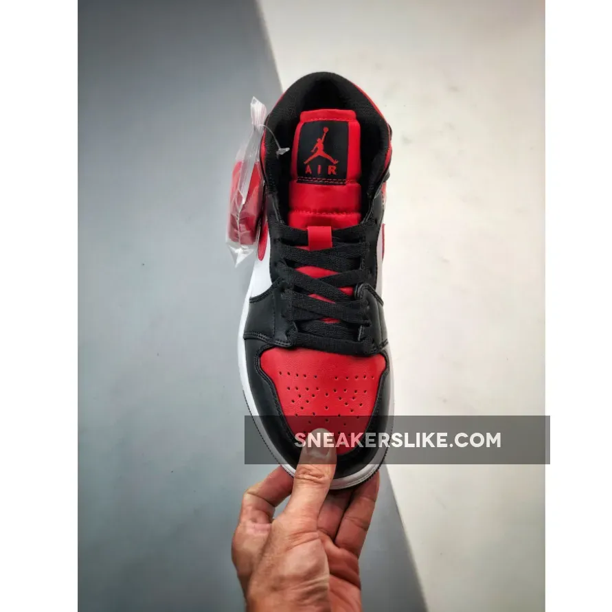 A new Air Jordan 1 Mid takes inspiration from an iconic colourway that has graced other Air Jordan silhouettes in the past. Introducing the striking Air Jordan 1 Mid Bred Toe White. This mid-cut AJ1 isn’t an exact replica of other Bred variants. It does have its own unique charm. The toe section is as Bred as it gets, with a University Red perforated toe box and a black toe cap. Contrasting white mid-panels show off pitch-black profile Swooshes on both sides of the shoe.