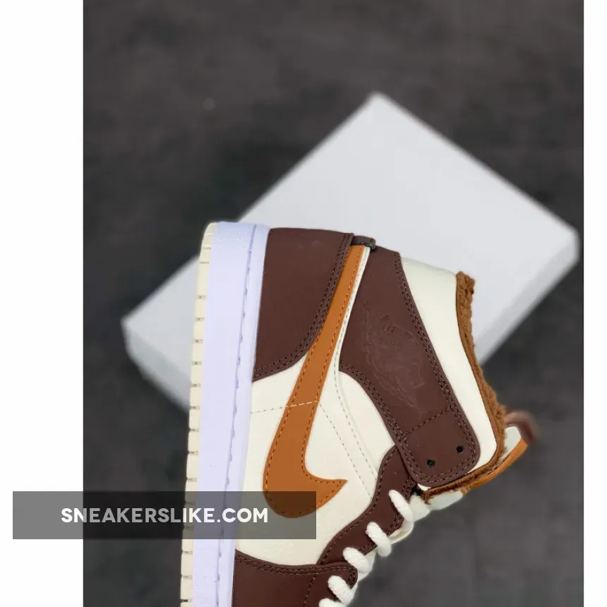 The Women’s Air Jordan 1 Mid SE ‘Cream Dark Chocolate’ gives the classic silhouette a refreshed build in subdued earth tones. Braided rope laces secure the upper, featuring a tan leather base with dark brown nubuck overlays and a chestnut Swoosh. Plush fleece lines the mid-cut collar, while faux quilted detailing decorates the tongue, marked with a Jumpman-debossed tag in brown leather. The sneaker rides on a durable cupsole that pairs white sidewalls with a beige rubber outsole.