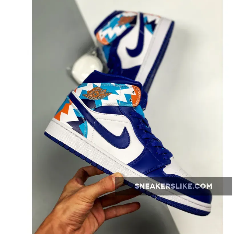 Similar to a grade school Jordan 7, this Jordan 1 Mid GS Geometric Print White Blue is a loud sneaker that will be one to watch out for when it drops. A white upper with electric blue overlays, such as the toe cap, around the lace unit, the Swoosh and the ankle cushioning, is interspersed with geometric orange and light-blue pattens across the ankle flaps and heel panel. These bright colours also make their way onto the iconic Wings logo on the lateral sides, as well as Michael Jordan’s legendary Jumpman logo at the top of the tongue. All tied up with a dark blue lace unit, this J1 Mid is a must-cop. We’ll also keep you up to date with other Jordan and Nike news and releases.