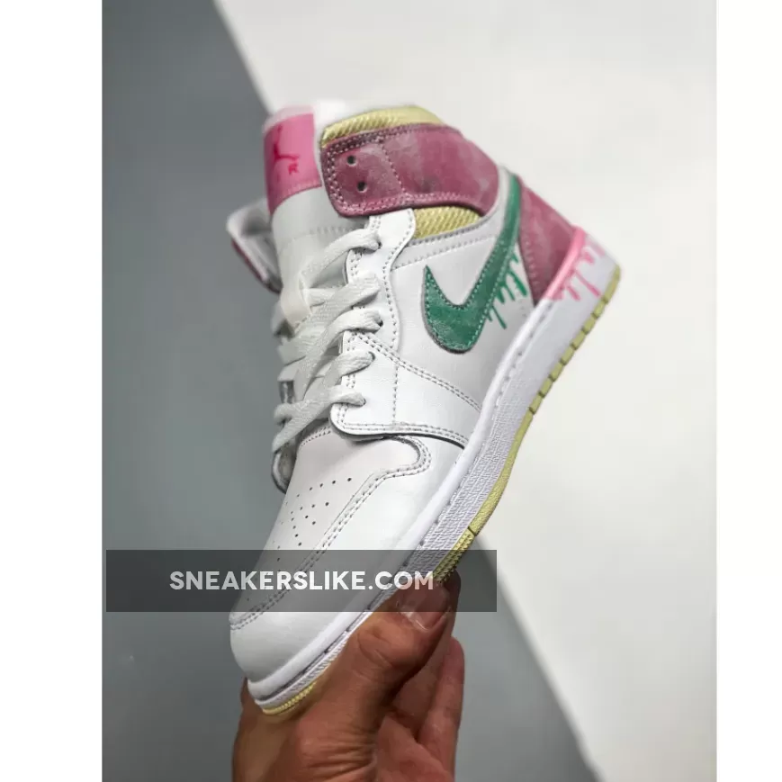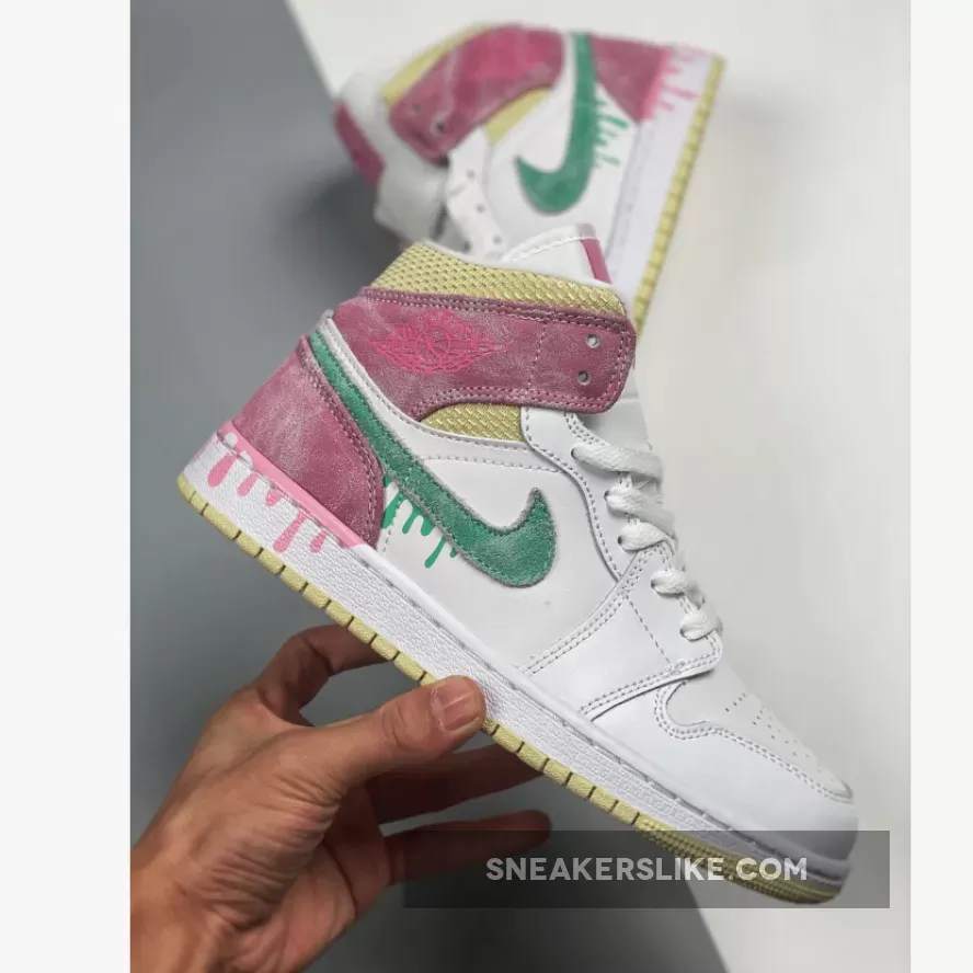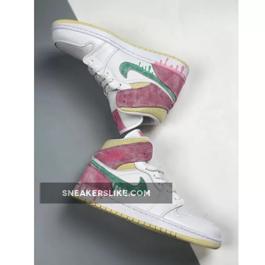 Jordan fans, are you ready to cop the Jordan 1 Mid GS Paint Drip? This latest colorway of Michael Jordan’s first-ever signature basketball signature flaunts a summer-ready design and will be releasing exclusively in grade school sizes. That means the younger generation is going to be seen very soon rocking heat on their feet that’ll make all other sneakerheads envy. If these hold a must-have status for you, then use our Jordan 1 Mid GS Paint Drip raffles list for your best chance in securing a pair.Working on a mid-top profile, the upper is crafted from crisp white leather overlays that wrap around the panels upfront. The rear panels then indulge in a pink tone accented with paint drippings that flows all the way down to the rear midsole, not to forget that the profile Swooshes across the sides also appears in the same fashion except in eye-catching green hues.Of course, the AJ1 wouldn’t be complete if we didn’t mention MJ’s signature wings logo debossed in neon pink on the ankle flap and instantly-recognisable Jumpman on the tongue. So if you’re looking to cop, keep it locked in right here at Our Store Supplier as we’ll keep you in the loop.