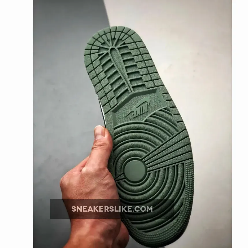 The classic white leather upper is central to the design, a nod to the Air Jordan 1’s mid-1980s origins and its enduring appeal. The sneaker retains its heritage feel with black collars and white nylon tongues, elements that are quintessentially Air Jordan 1. These traditional aspects are beautifully contrasted by the contemporary “Jade Smoke” color, which breathes new life into the classic design. This modern hue is tastefully applied to the overlays, laces, and rubber outsoles, creating a visually striking appearance. The Sail midsole enhances vintage vibes, nodding to classic sneaker design.