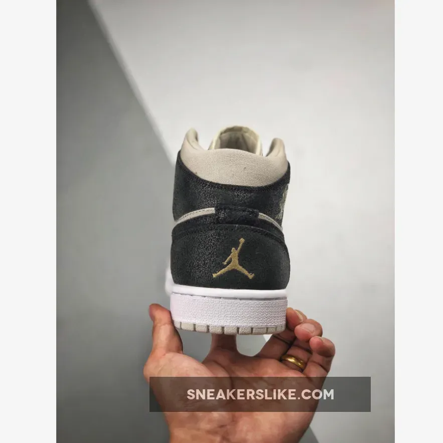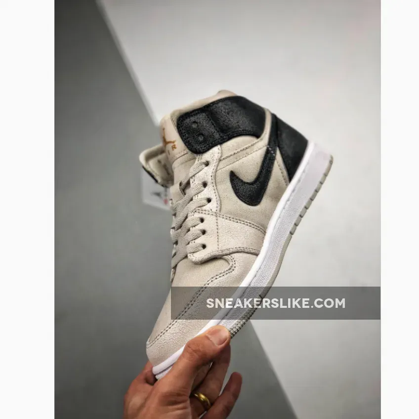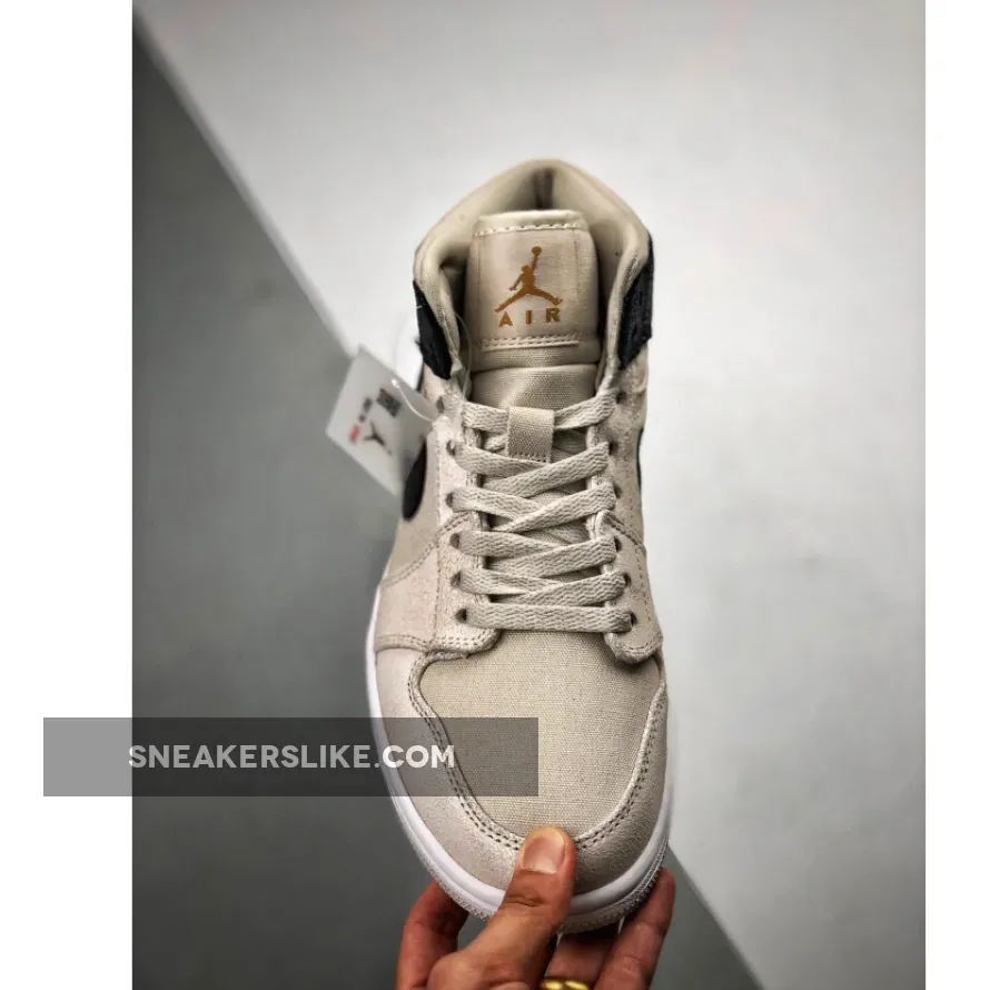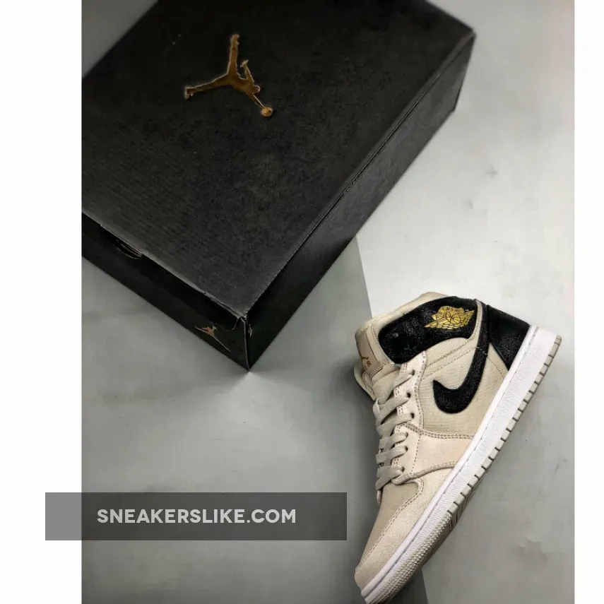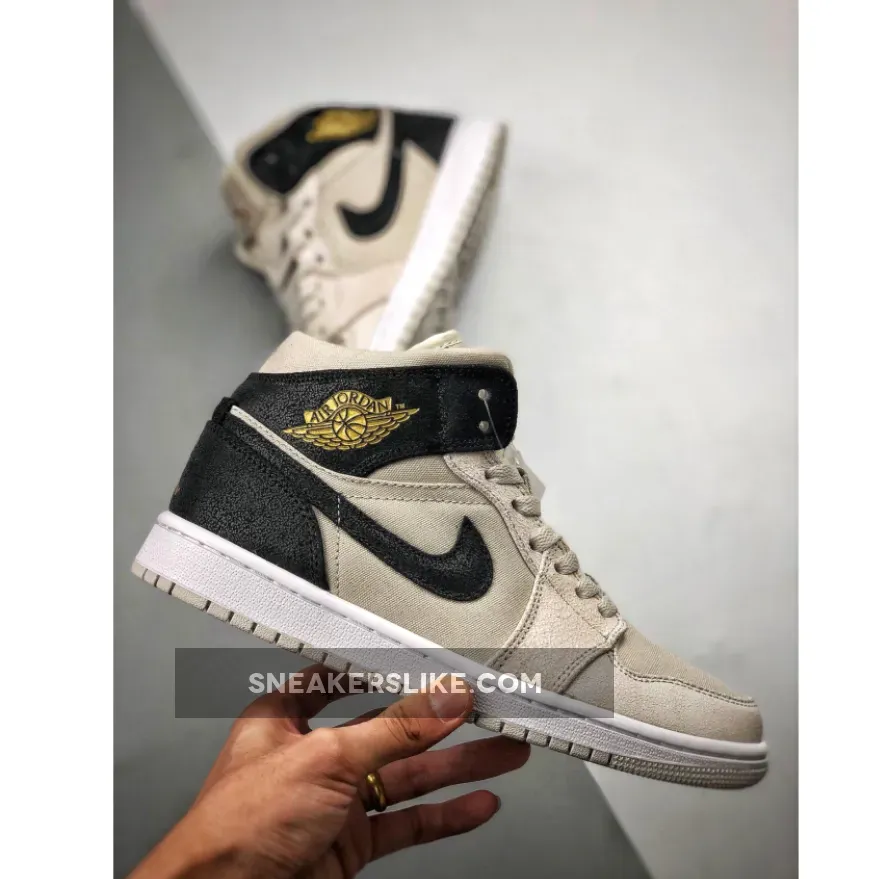 Being specific, this Air Jordan 1 comes dressed in a Light Bone, Metallic Gold and Black color theme. As for materials, we have canvas used across the base while suede lands on the overlays and Nike Swoosh. Across the heel and Swoosh is Black while Light Bone lands on the collar, tongue, laces and base. Added for a premium look is Metallic Gold which is applied to the Wings and Jumpman branding.