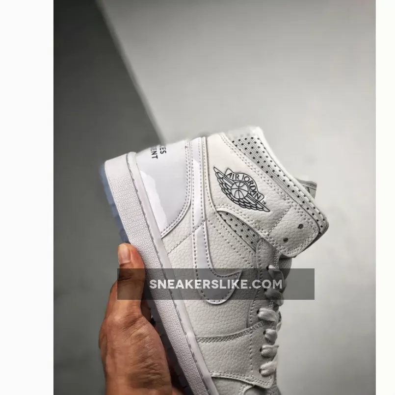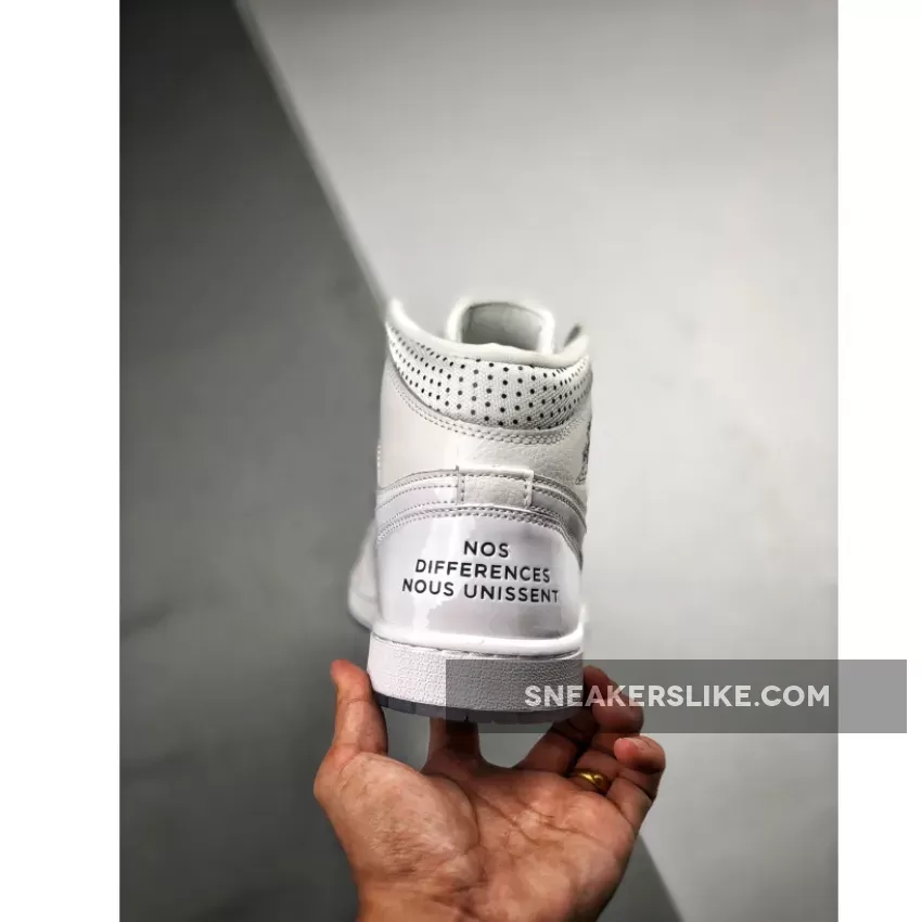 Dressed in a White, Midnight Navy, and Metallic Red Bronze color scheme. This mid-top Air Jordan 1 features a White tumbled leather upper with smooth leather on the Swoosh logos. Highlighting the shoe is the “Nos Differences Nous Unissent” text on the heels, which translates to “Our differences unite us.”