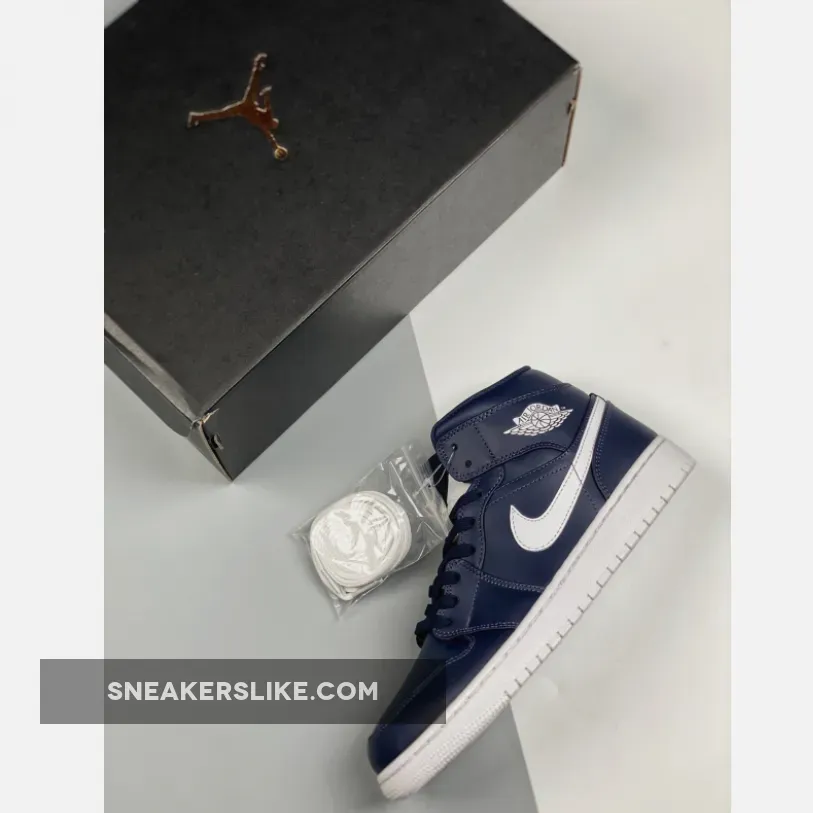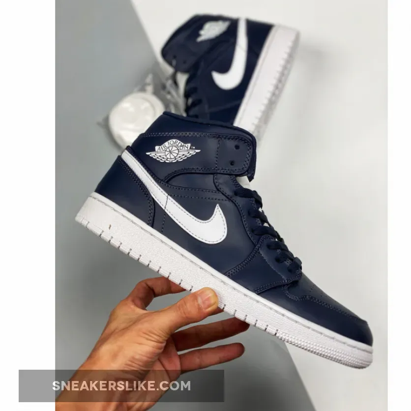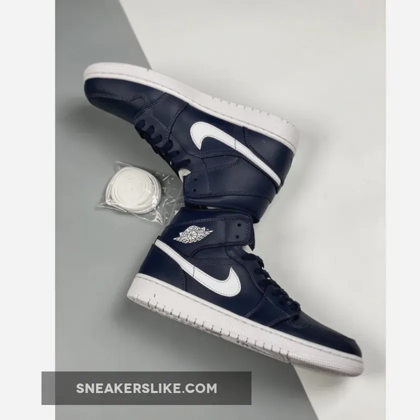 This Air Jordan 1 features a clean Obsidian and White color combination. Across the uppers we have a mixture of leather and synthetic leather while Obsidian Blue runs throughout.