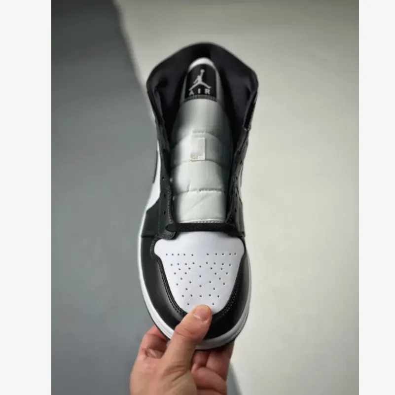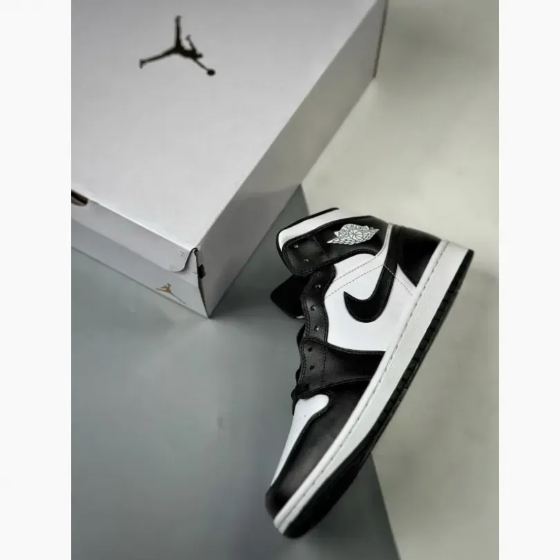 this specific Air Jordan 1 Mid stays true to Panda blocking, with white uppers and nylon tongues engulfed by a sea of bold black overlays.The signature Nike Swoosh cements itself in Black, while the Air Jordan Wings appear in White on the ankle collar.