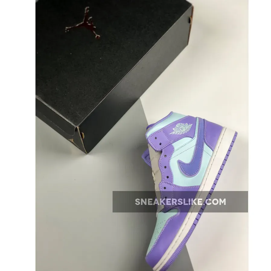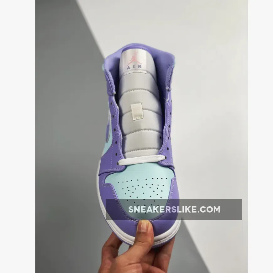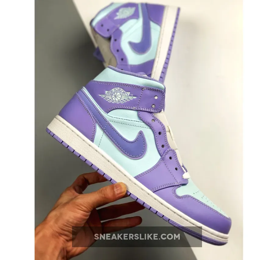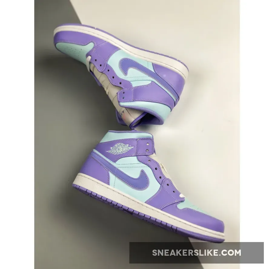It doesn’t get more pastel than this. The Jordan 1 Mid Purple Aqua Blue is the latest addition to Nike’s AJ1 pastel line up. Dressed in smooth-leather, lilac overlays that match the purple outsole, this is one sickly-sweet Jordan that will be the perfect addition to any colour-loving sneakerhead out there.Aqua blue adorns the upper on this J1, contrasting subtly to the purple hues found on the toe cap, around the lace unit, heel, ankle panels and iconic Nike Swooshes on both medial and lateral sidewalls. A metallic-looking, creamy lace unit ties up this Air Jordan 1 from the perforated toe box to its cushioned ankle collar, with Nike branding found at the top of the tongue. Additional branding found in the form of Michael Jordan’s customary Wings insignia its in blue in the usual place on the ankle flaps.
