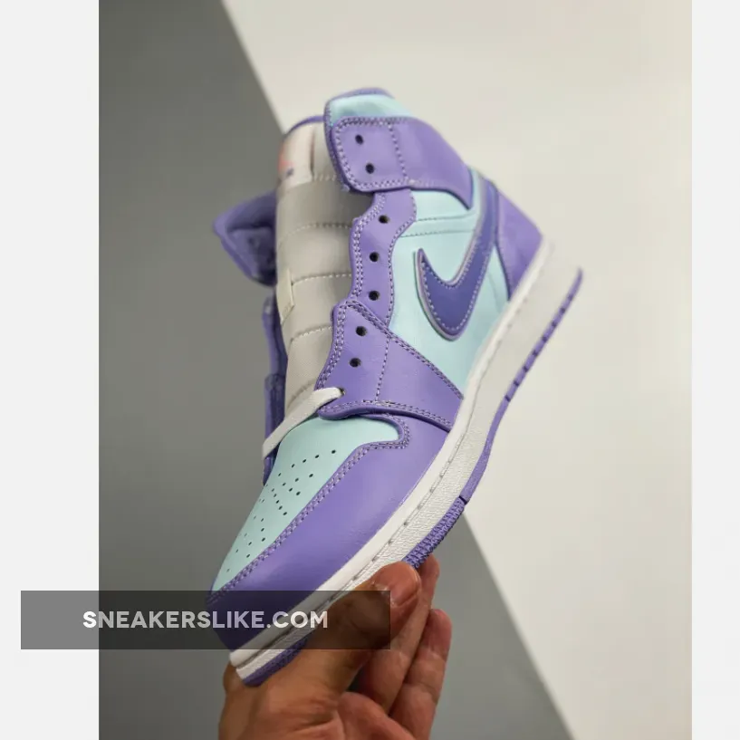 “Honestly loving these Air Jordan 1 Mids! The aqua blue and purple combo is surprisingly fresh, and the premium leather upper feels luxurious. The metallic lace unit adds a nice touch of sophistication. Overall, I’m really impressed with the design and quality – would definitely recommend!”