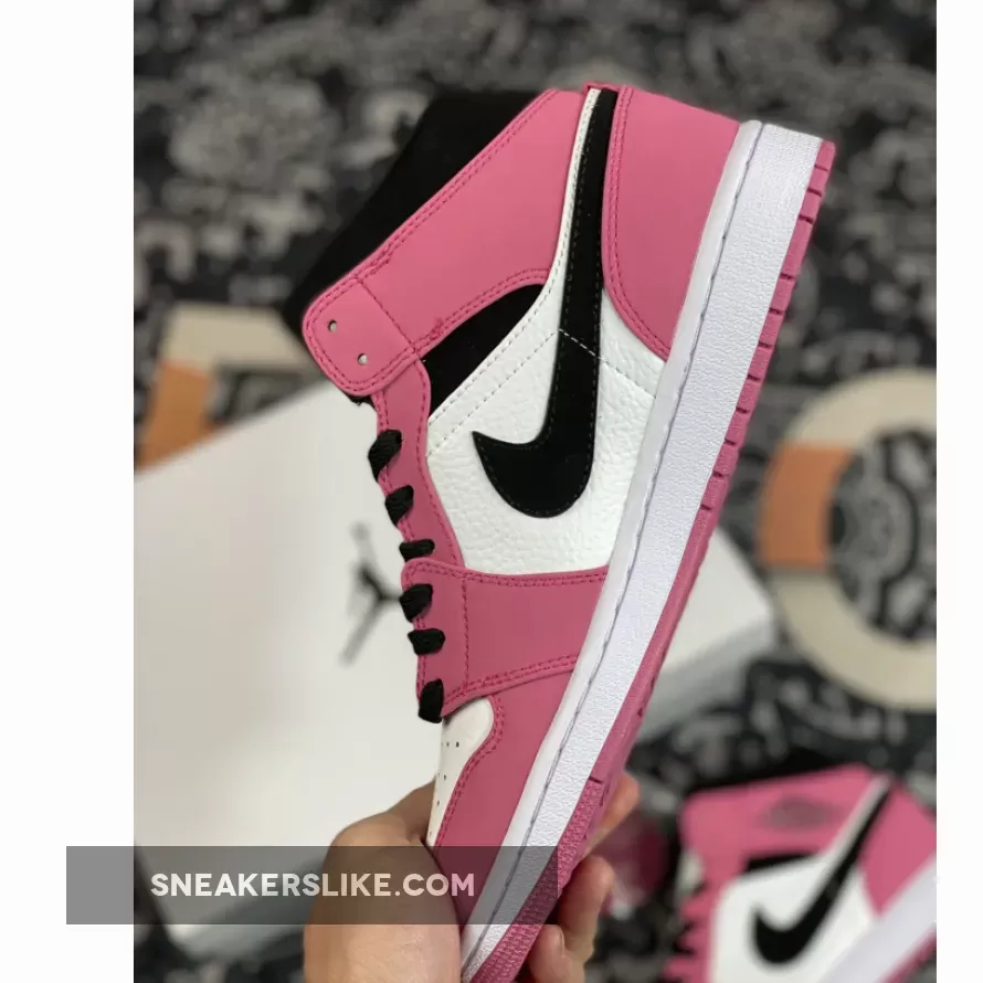 Jazz up your style with the Air Jordan 1 Mid Berry Pink White Black. With its appealing colourway, no one can deny that these shoes are eye candy. It follows the beloved traditional Air Jordan 1 colour blocking and starts with a colourless leather base. This pair is a perfect match for bright outfits but will also work to uplift a darker-toned look.