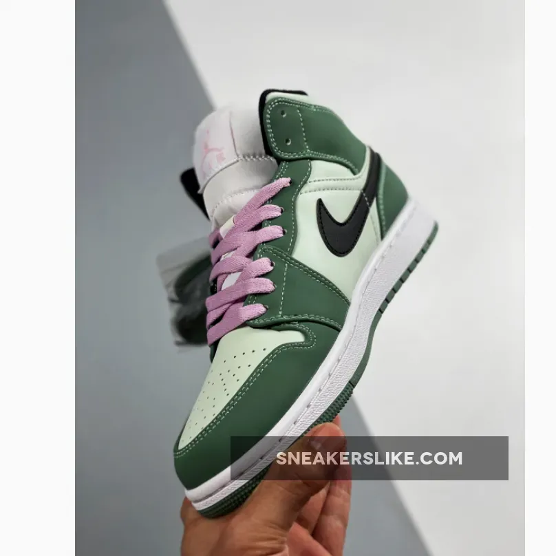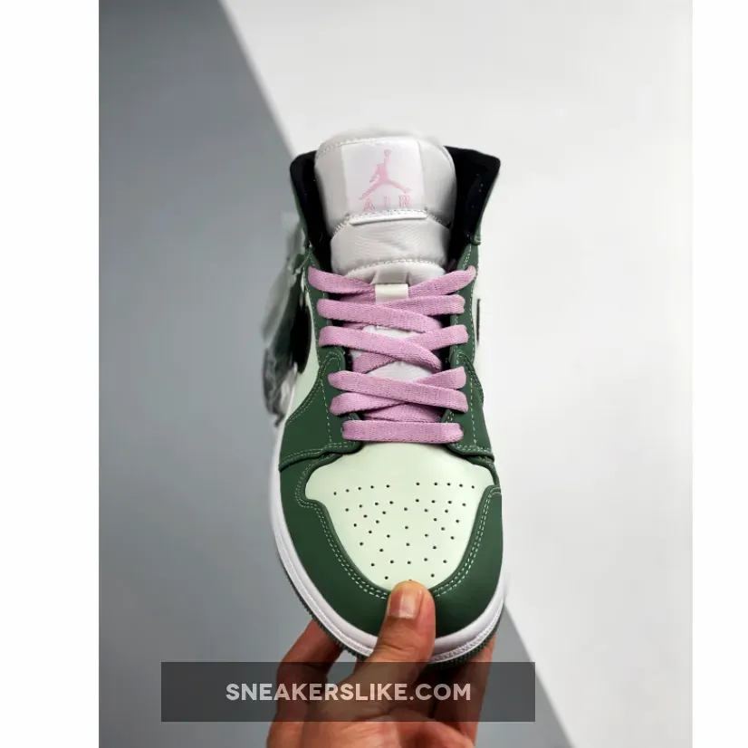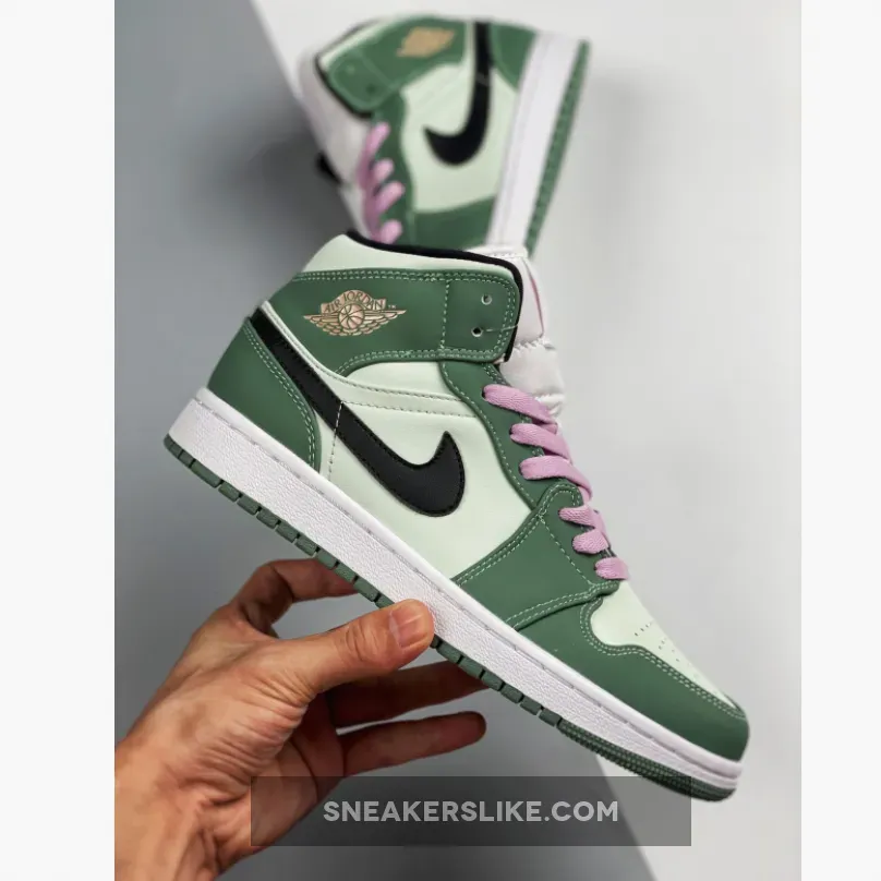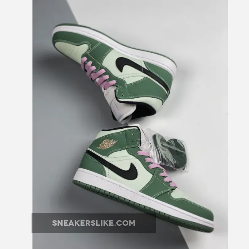 In recent times, sneakerheads have started to add the Jordan 1 Mid to their rotation. Though this mid-top version of Michael Jordan’s first-ever signature basketball shoes weren’t as popular before compared to the Jordan 1 Low type and Jordan 1 Retro High OG, a vast array of colourways started to appear on the must-cop list of many and needless to say, they’ve been selling out faster and faster every release. The Jordan 1 Mid SE Dutch Green in particular is one the many avid Jordan fans have their eyes on.Working on a tumbled leather base that flaunts a very faint hue of green, the supple suede overlays that wrap around the toes, lacing system, and rear segments, appear in a darker military-esque green tone. Contrasting black Nike Swooshes descend upon the medial and lateral sidewalls, joined with a set of pink laces tying the shoe forefoot, accentuating the colour scheme overall.Of course, you can’t talk about the AJ1 without mentioning MJ’s Jumpman branding on the tongue and insoles alike, as well as the ball-and-wings logo gracing the ankle flap.